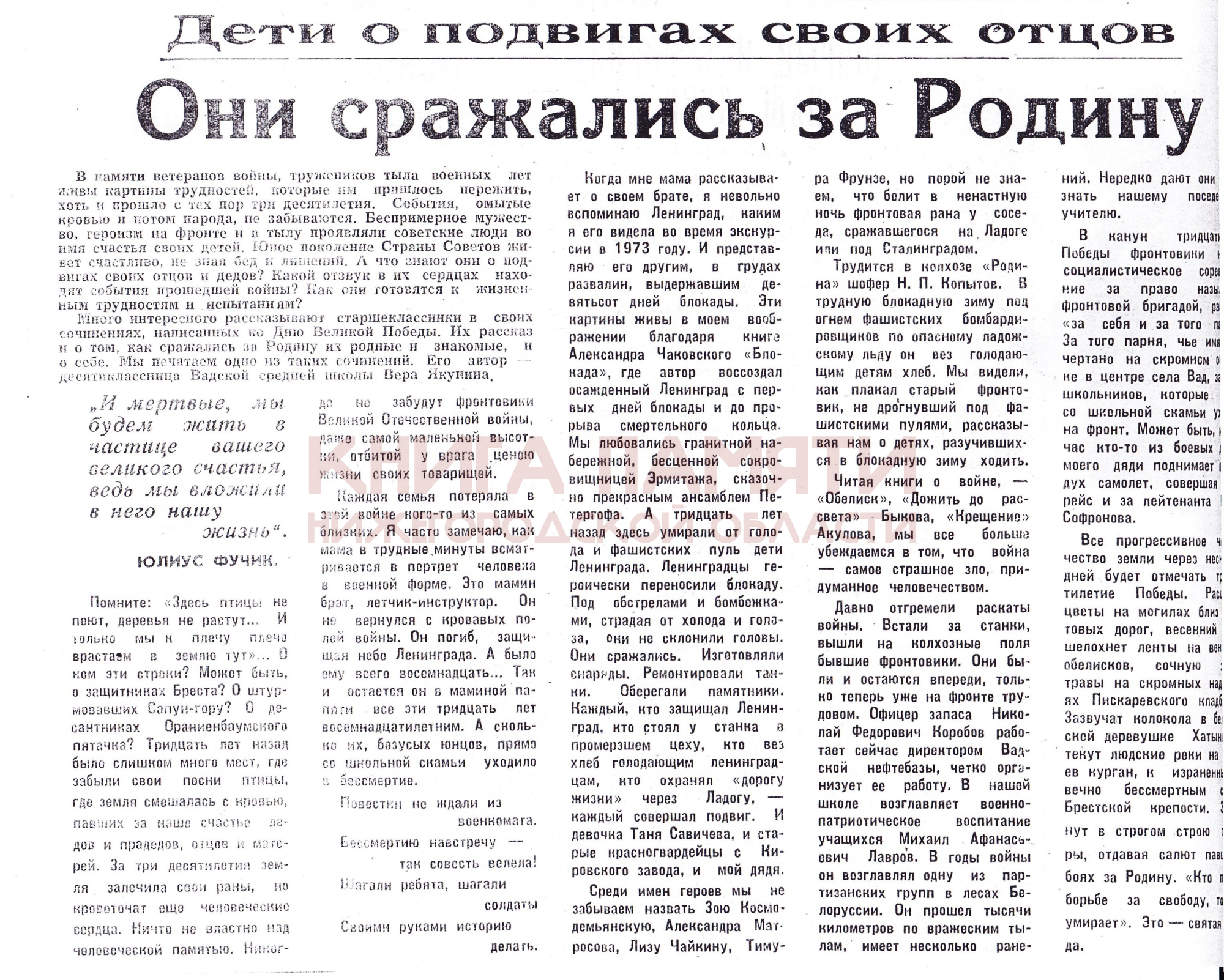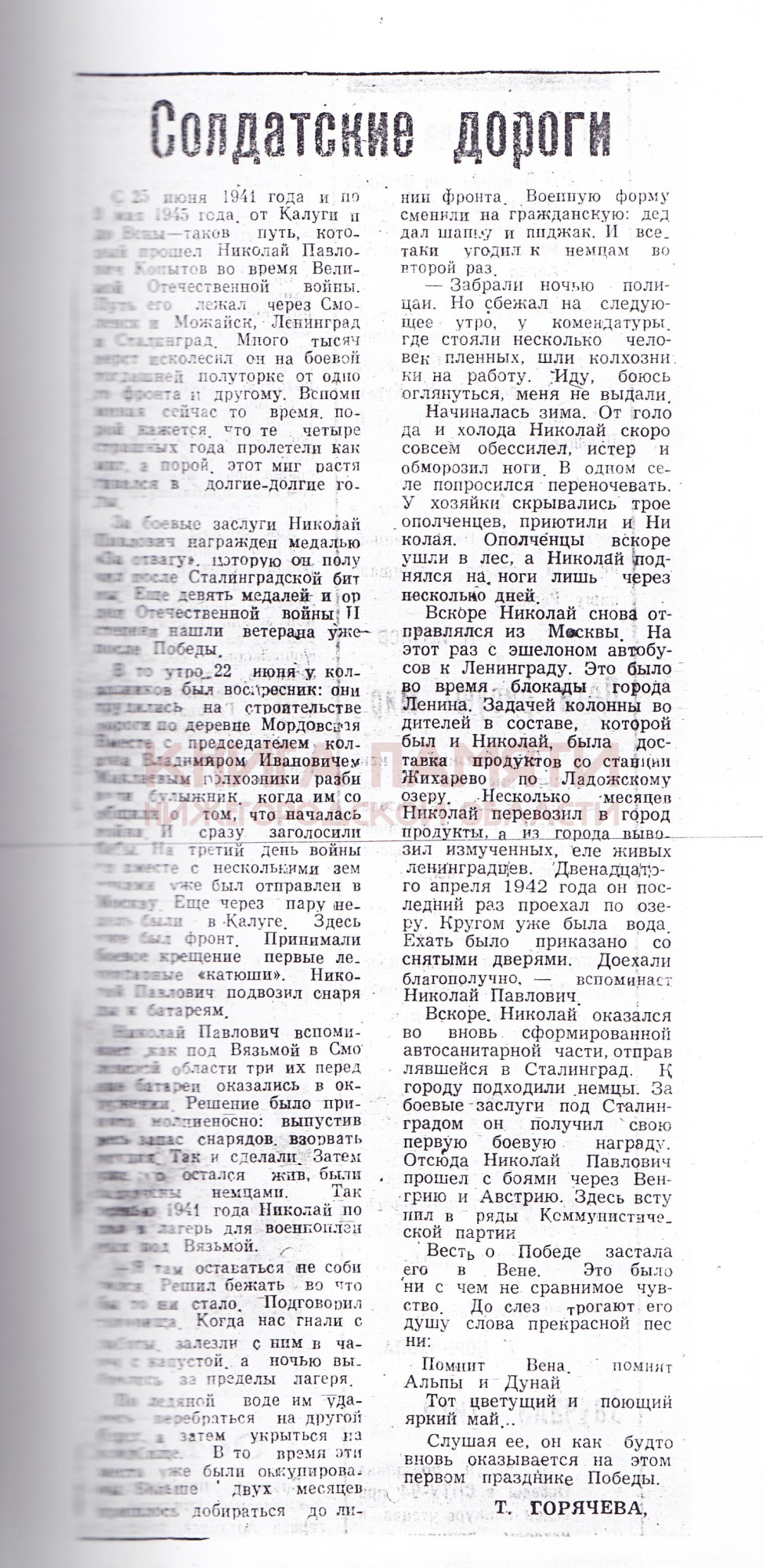 Ленинград выстоял, в этом немалая заслуга и солдата Николая Павловича Копытова.