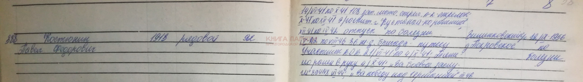 14.06.1941 - 10.1941 зап.мото-стерлк.п-к -стрелок, 10.1941 - 12.1941 э/госпит.г.Кустанай по ранению.12.1941 -04.1942 отпуск по болезни. 04.1942 -08.1946 36 бригада- путеец. Участник ВОВ 21.06.1941 — 04.10.1941.