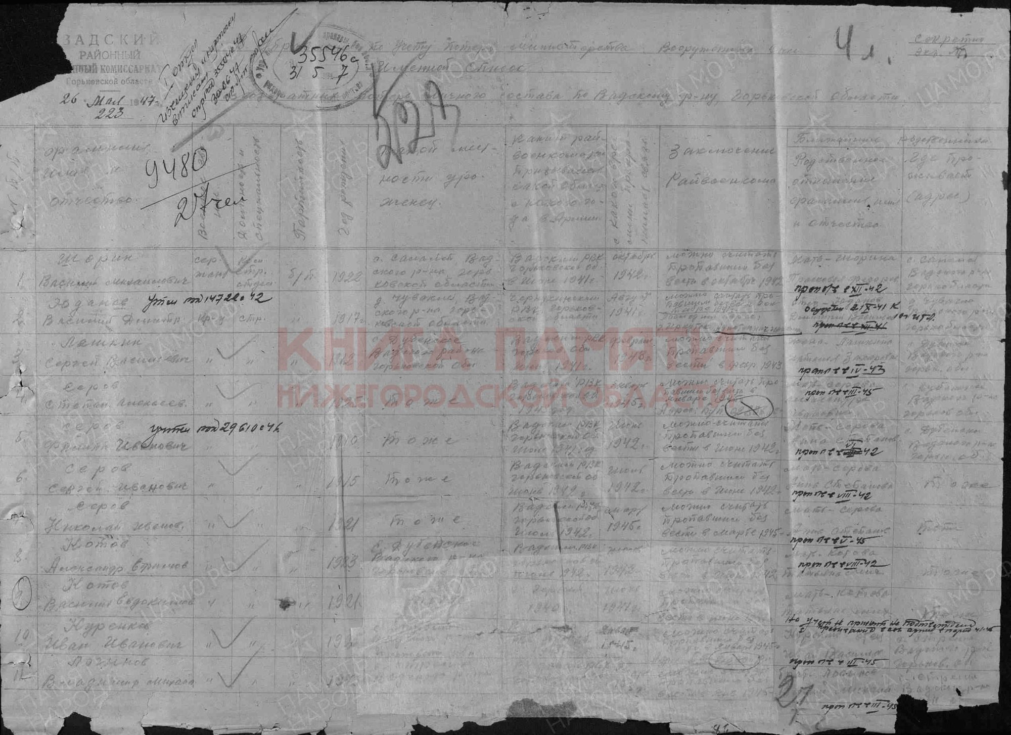 Арзамасский РВК, Горьковская обл., Арзамасский р-н