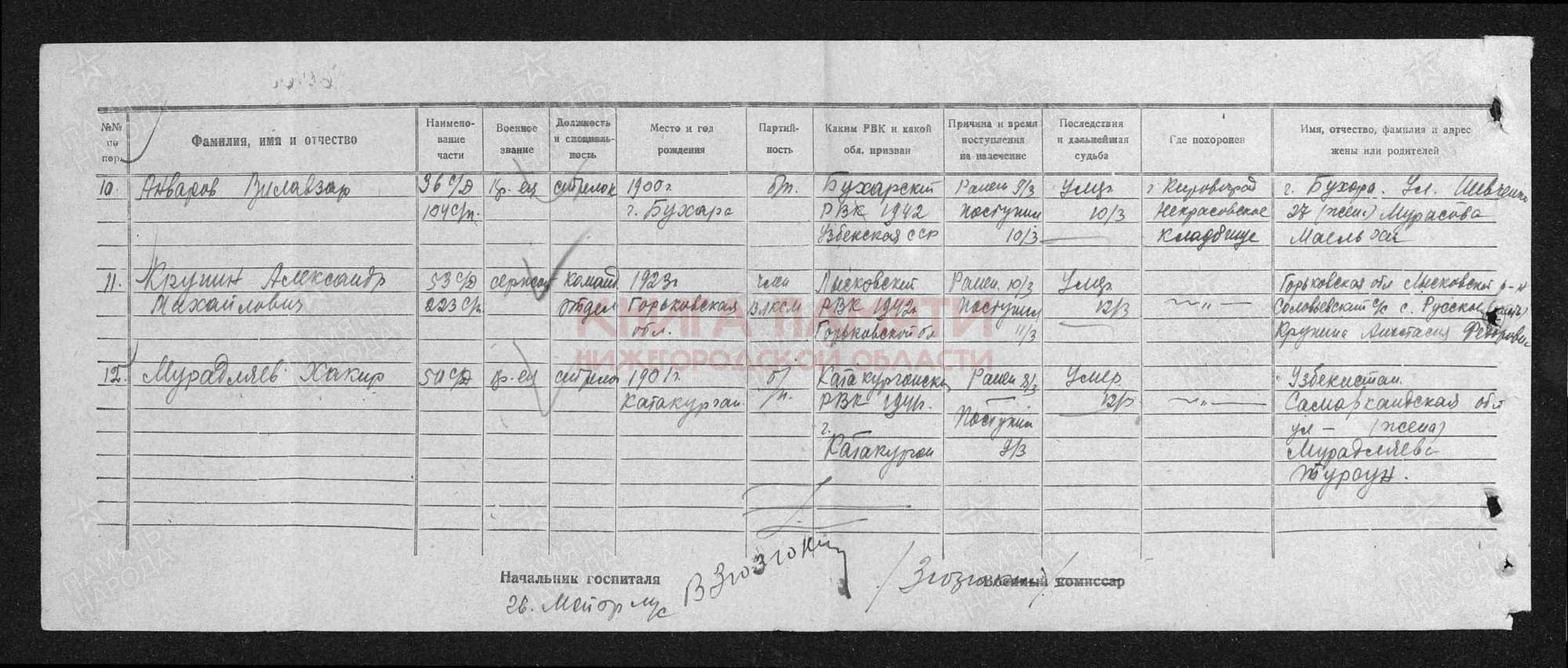Умер от ран 12.03.1944