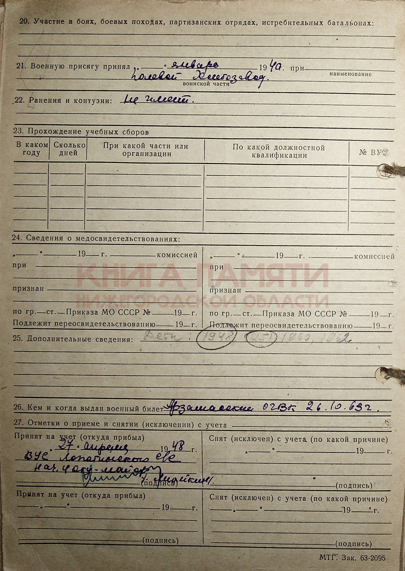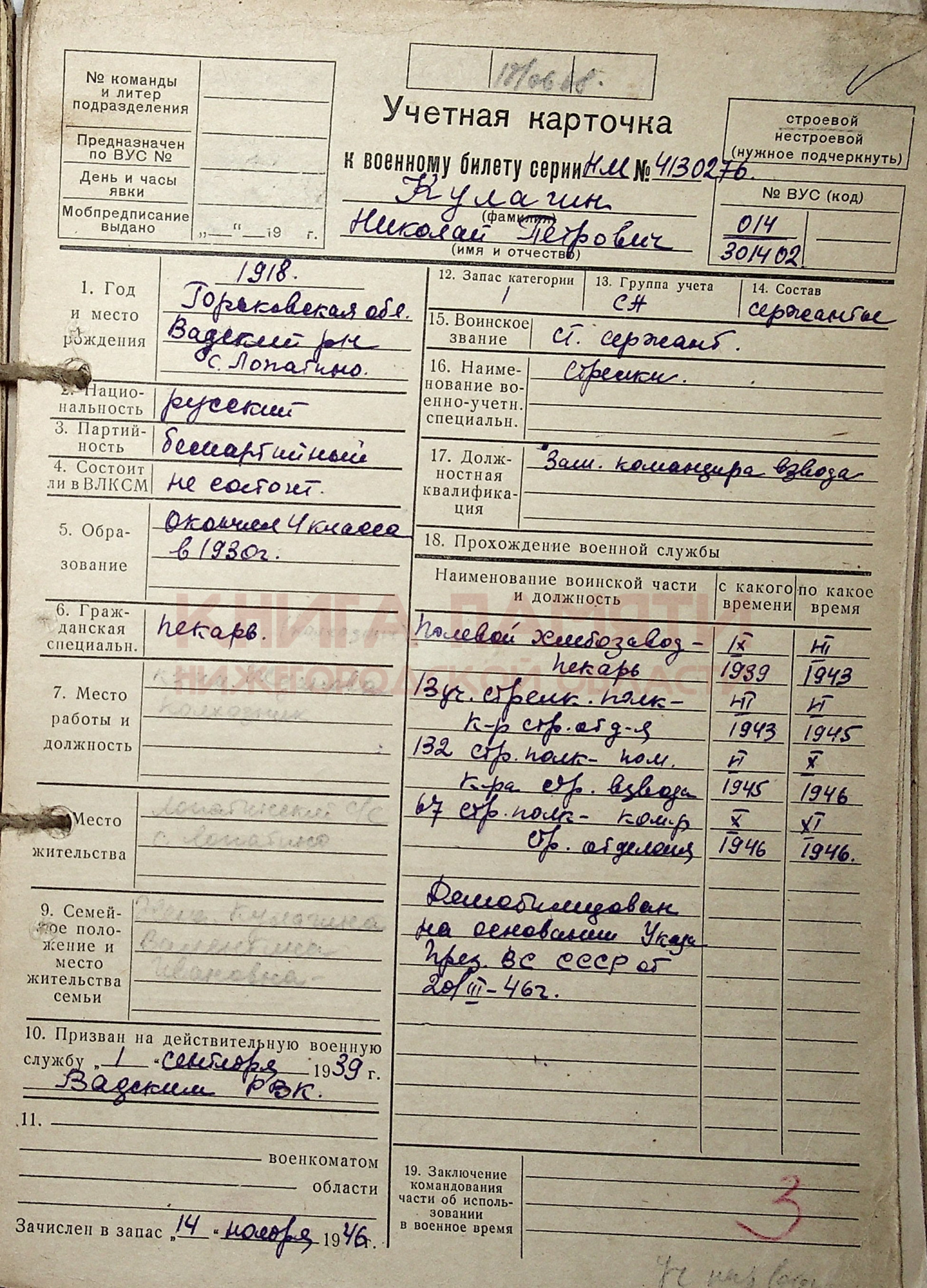 Демобилизован 20.03.1946 г. Умер в 1992 году
