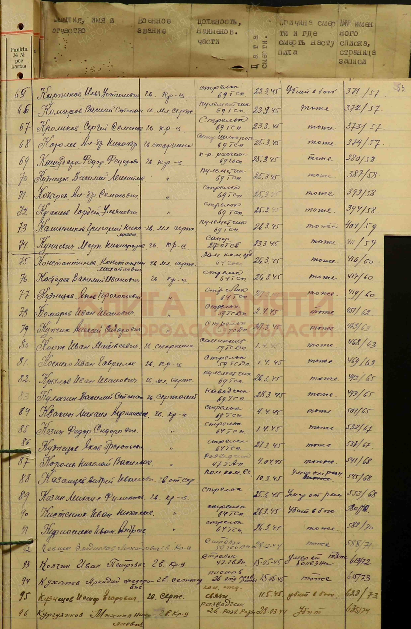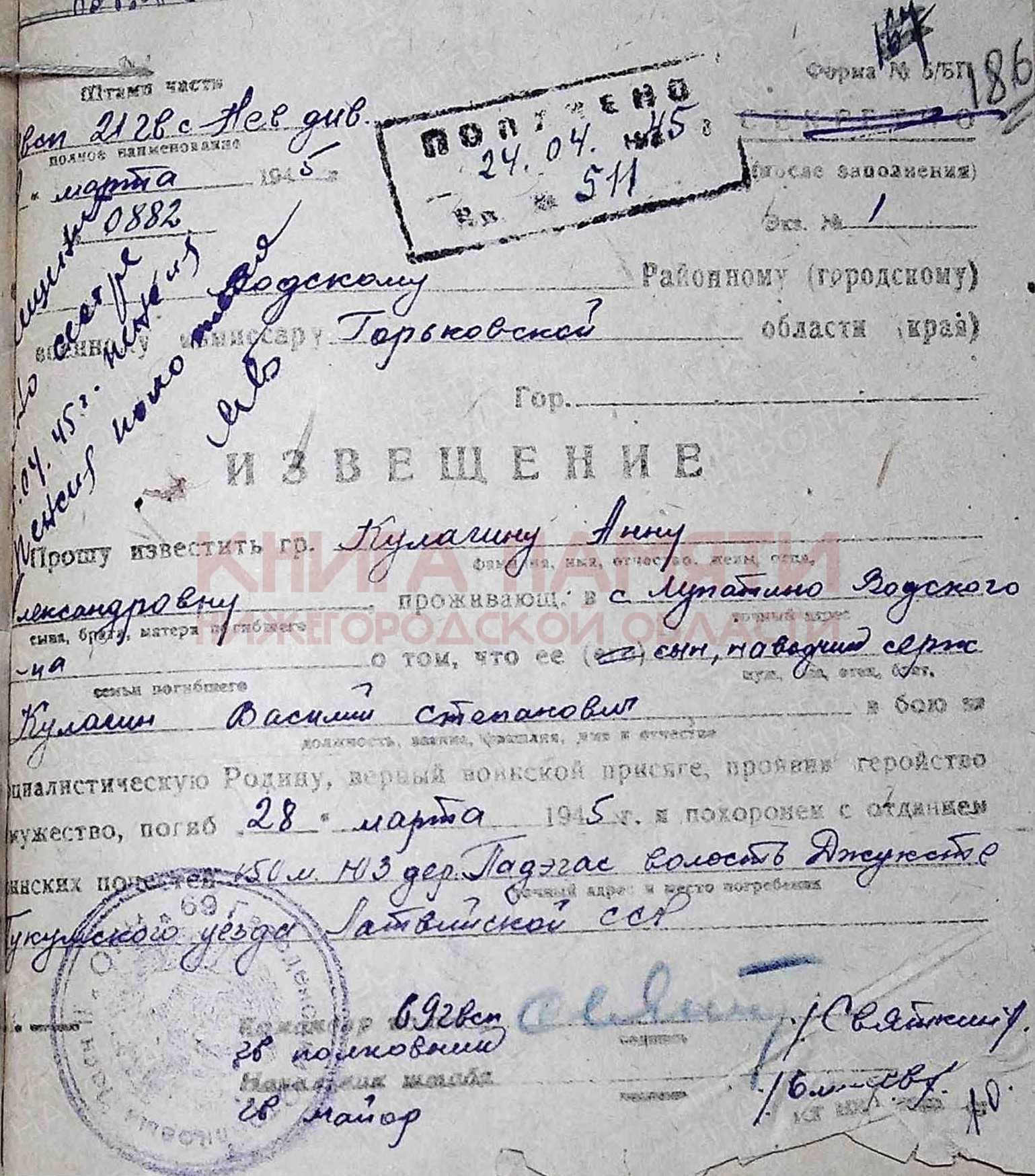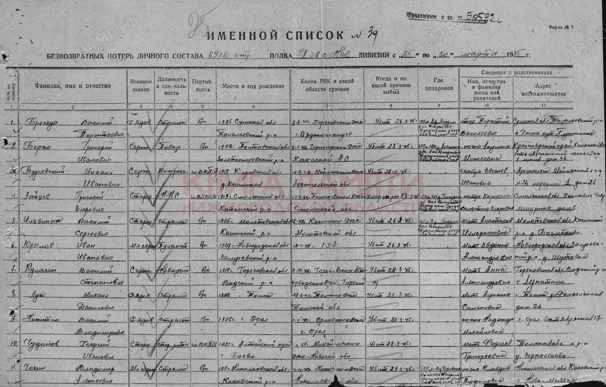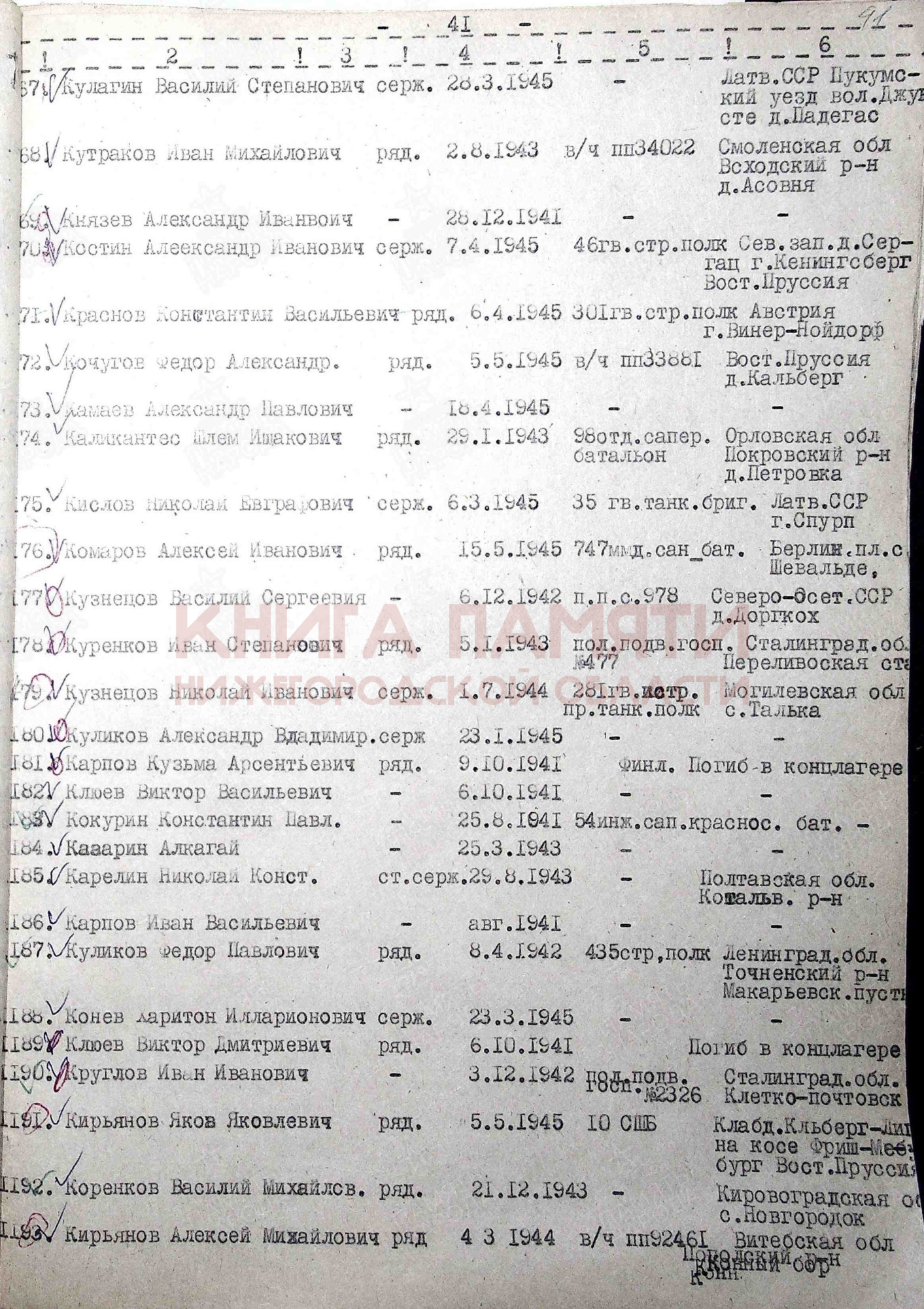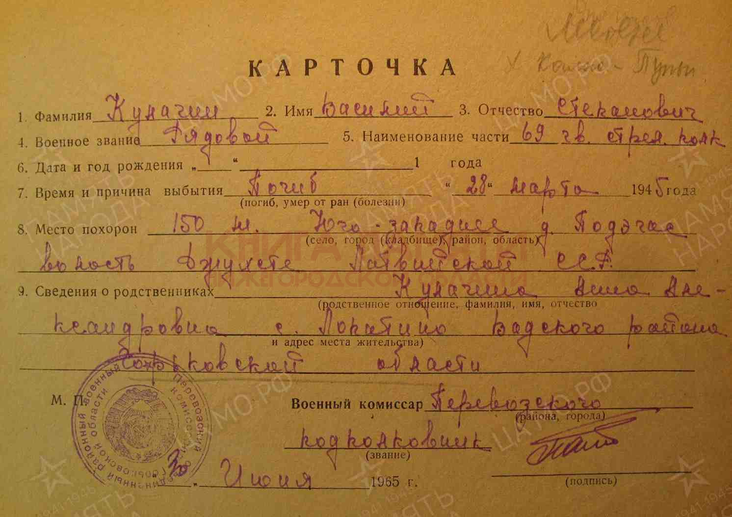 Погиб в бою 28 марта 1945 г Место захороненияЛатвийская ССР, Тукумский уезд, Джуксте вол., д. Лидуми, западнее, 100 м