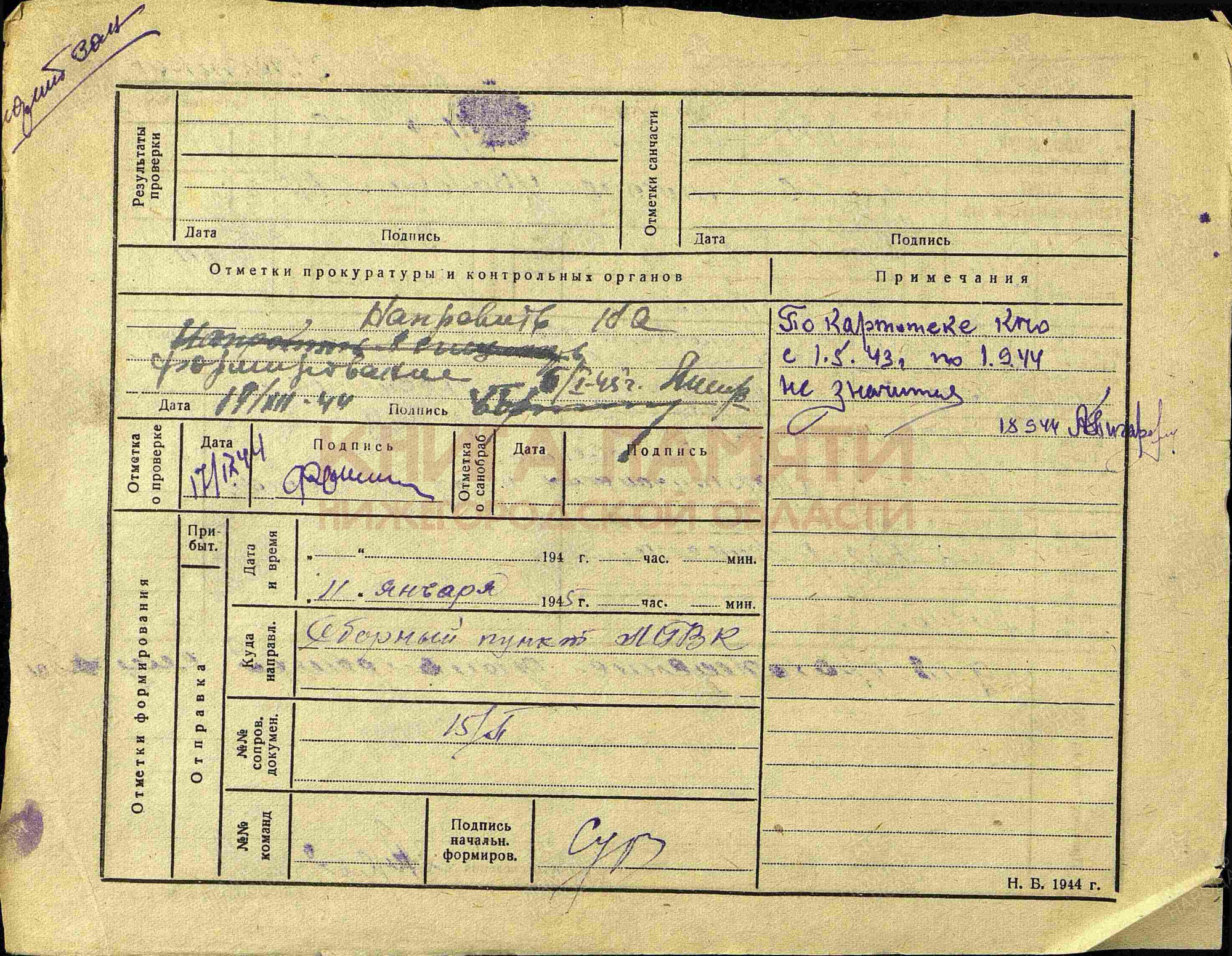 В январе 1944 эвакуирован на лечение в госпиталь, уволен по болезни.