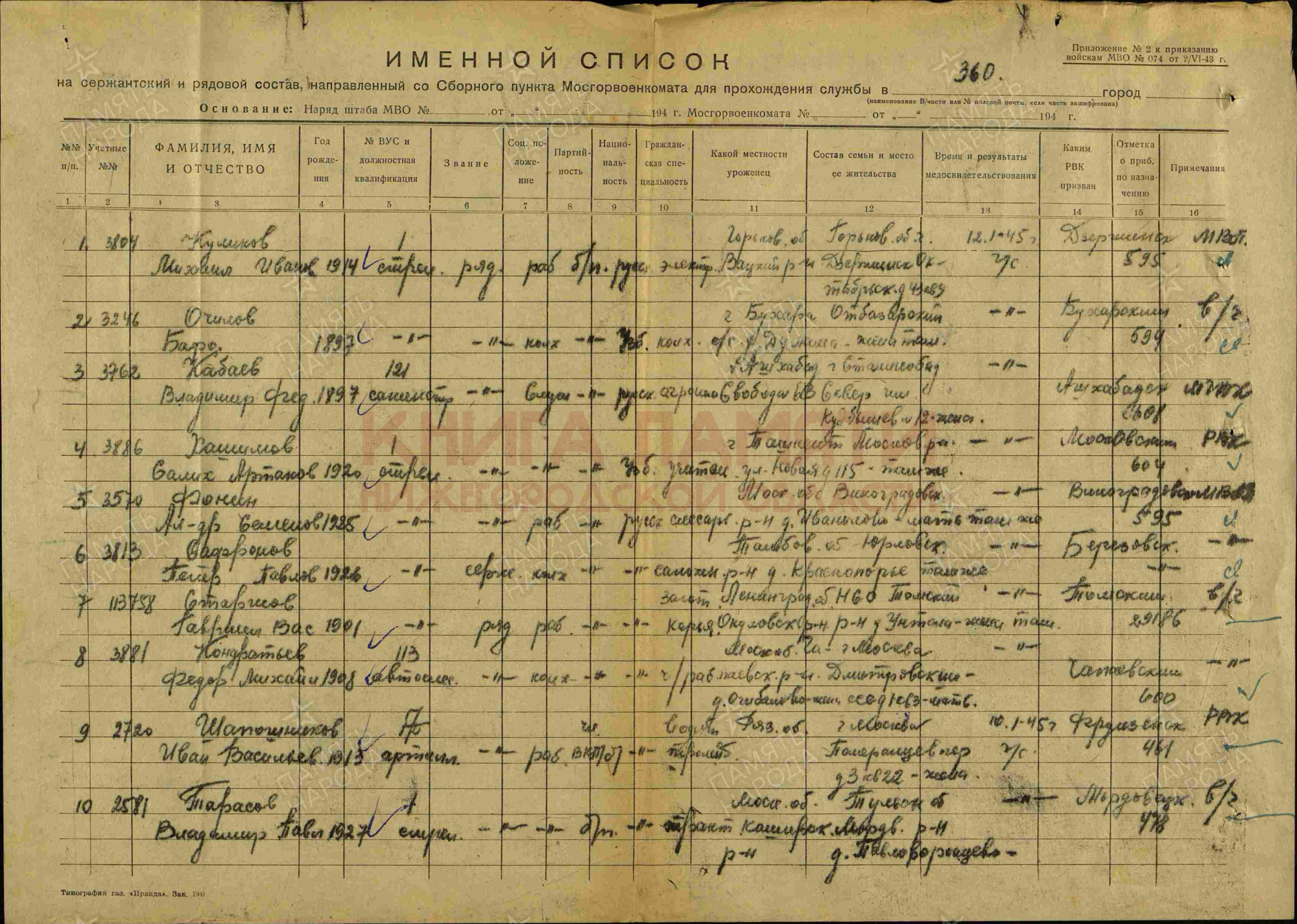 174 истребительный противотанковый артиллерийский полк; партизанский отряд им. Рокоссовского; 3 запасной батальон ПВО; Пересыльный пункт Московского городского военного комиссариата;
