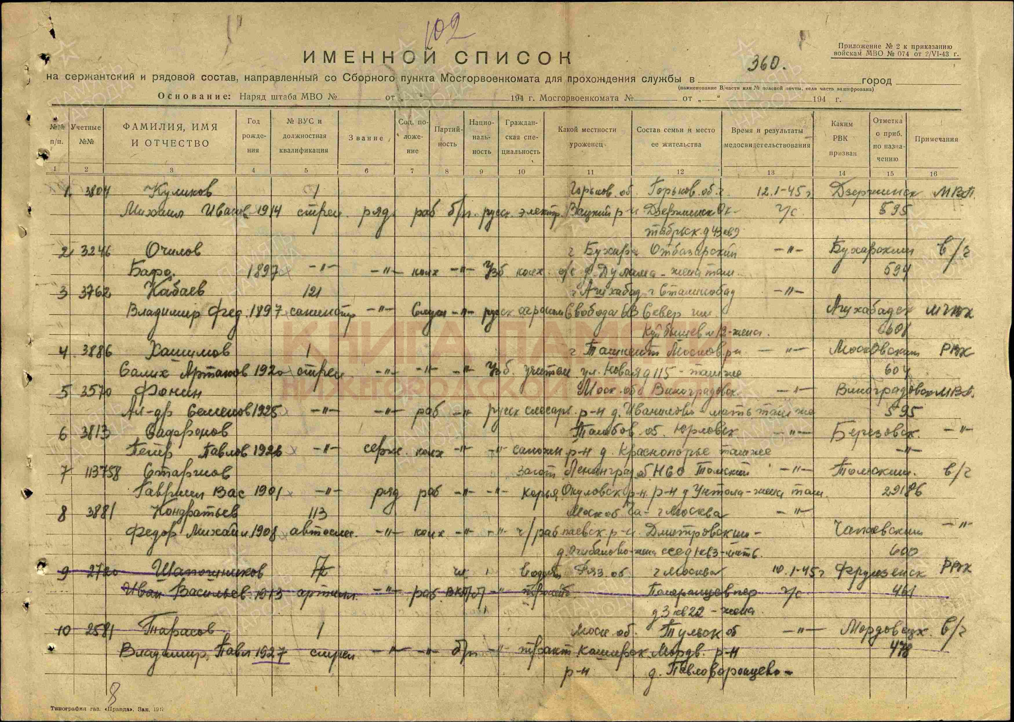 Дзержинский ГВК, Горьковская обл., г. Дзержинск; Вадский РВК, Горьковская обл., Вадский р-н