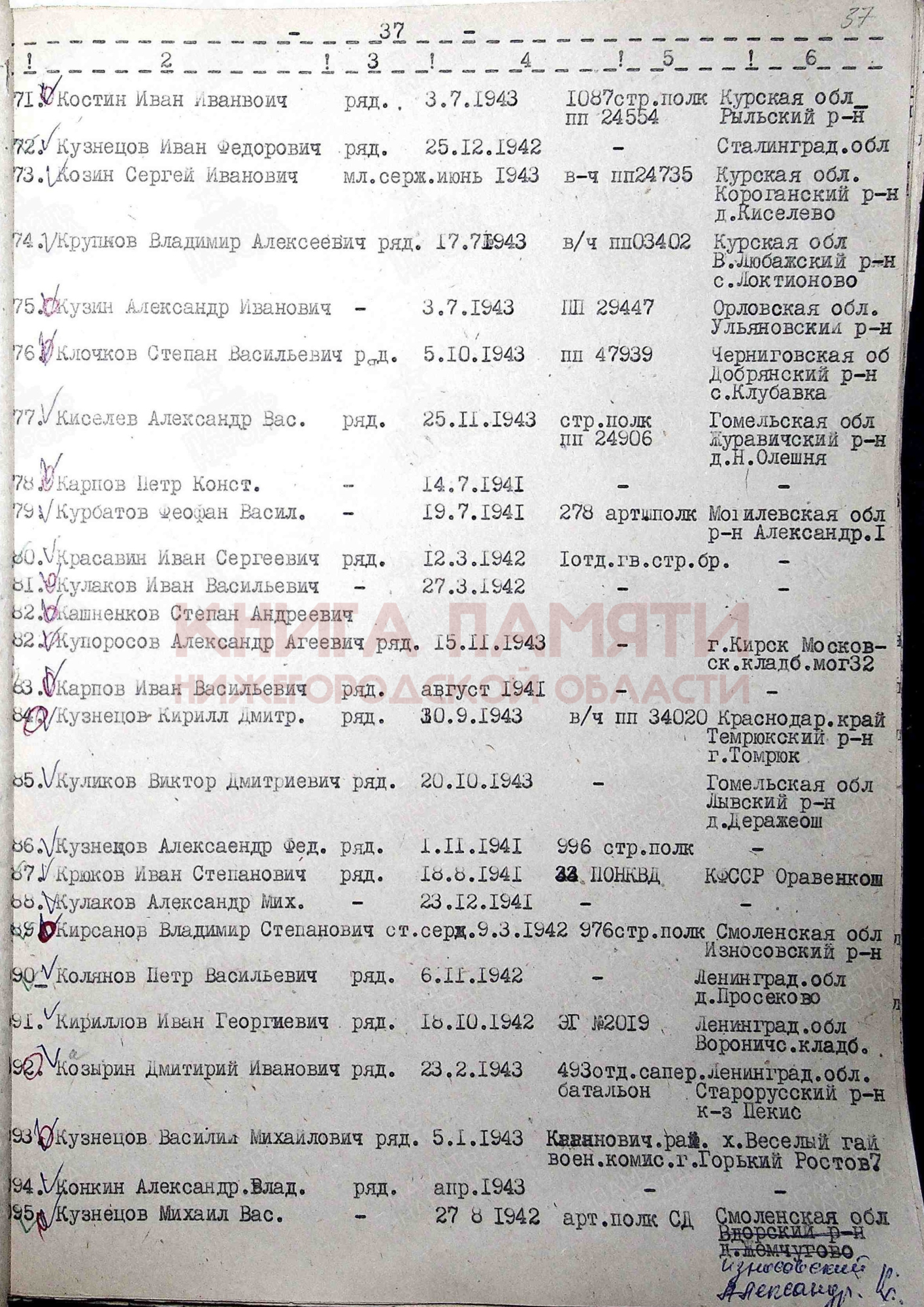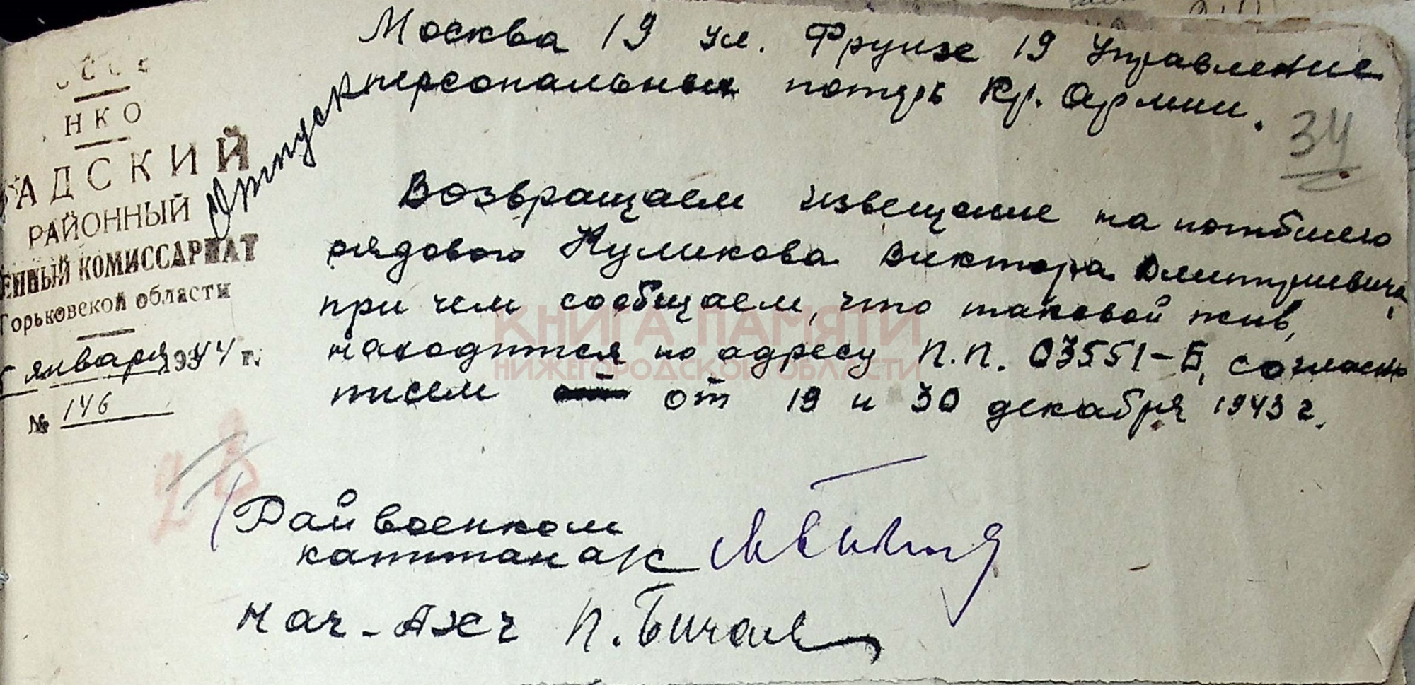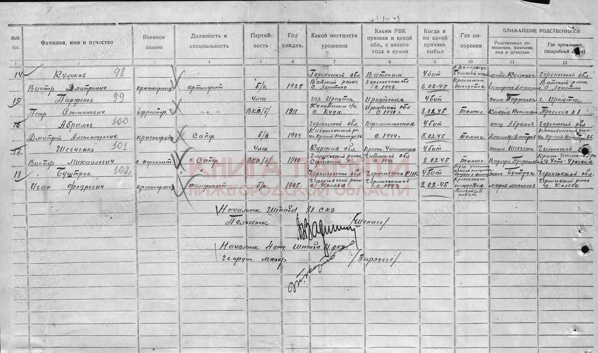 Погиб в бою 4 февраля 1945 г. Место захоронения - Белорусская ССР, Гомельская обл., Лоевский р-н, д. Деражичи, юго-восточнее, 1 км