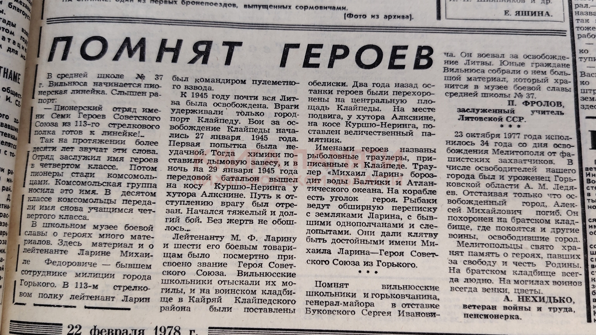 Статья из газеты Горьковская правда № 45 от 23.02.1978 (смотри в документах)