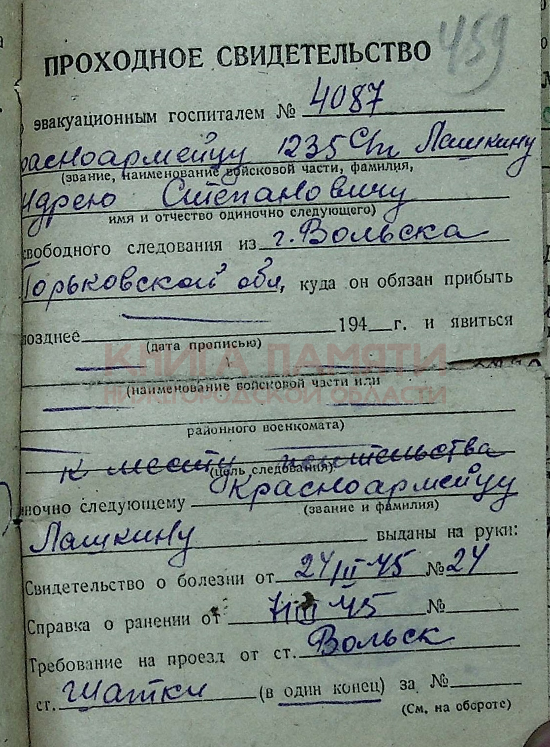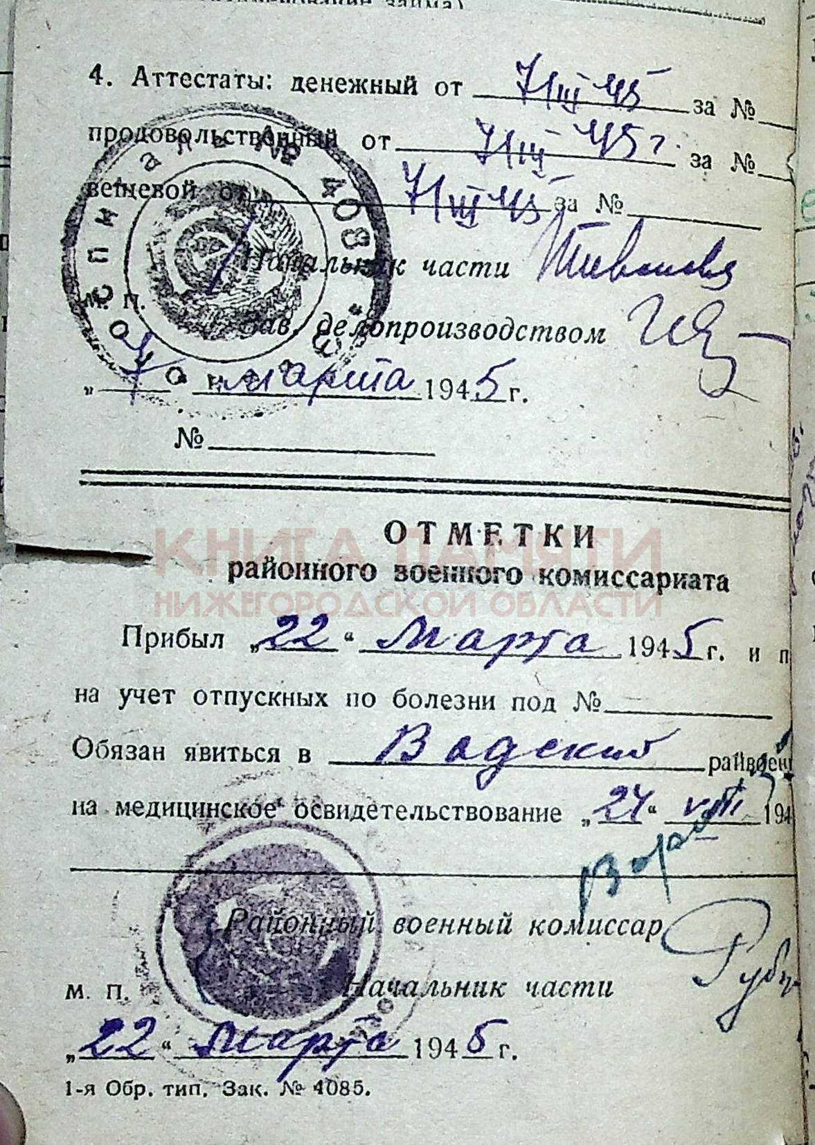 Демобилизован 19.05.45 г.
