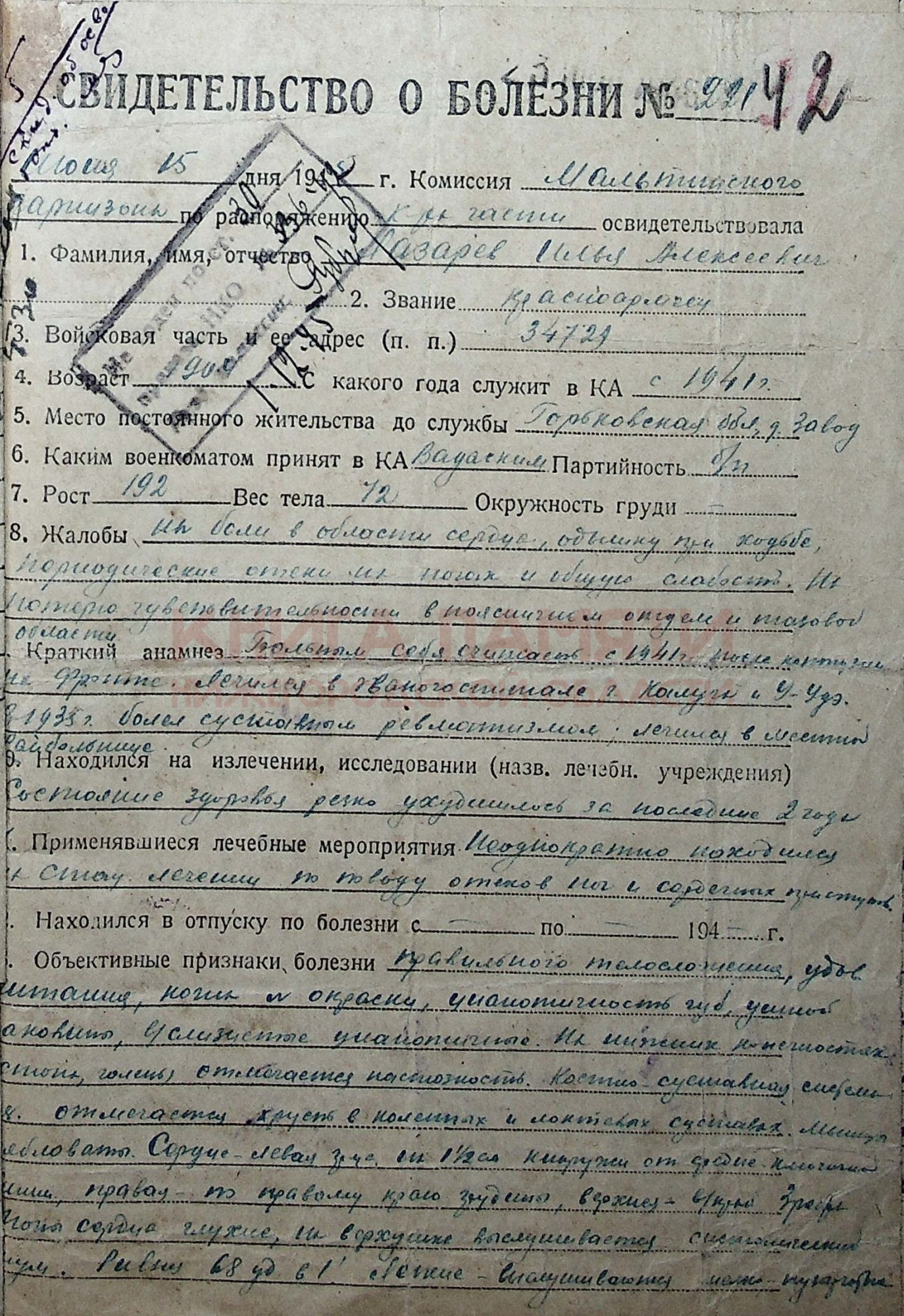 На основании свидетельства о болезни признан негодным к воинской службе с переосвидетельствованием через 6 месяцев.