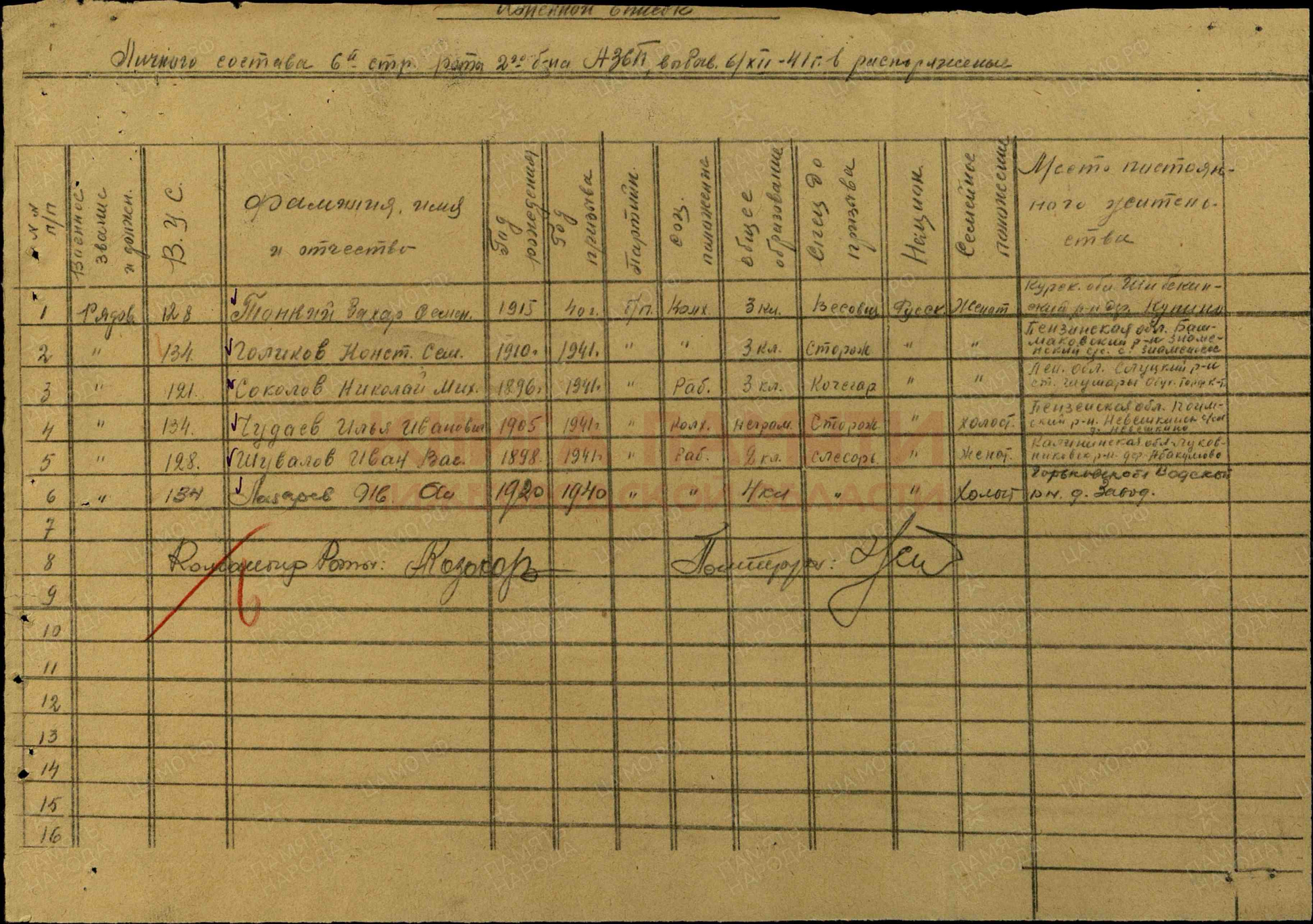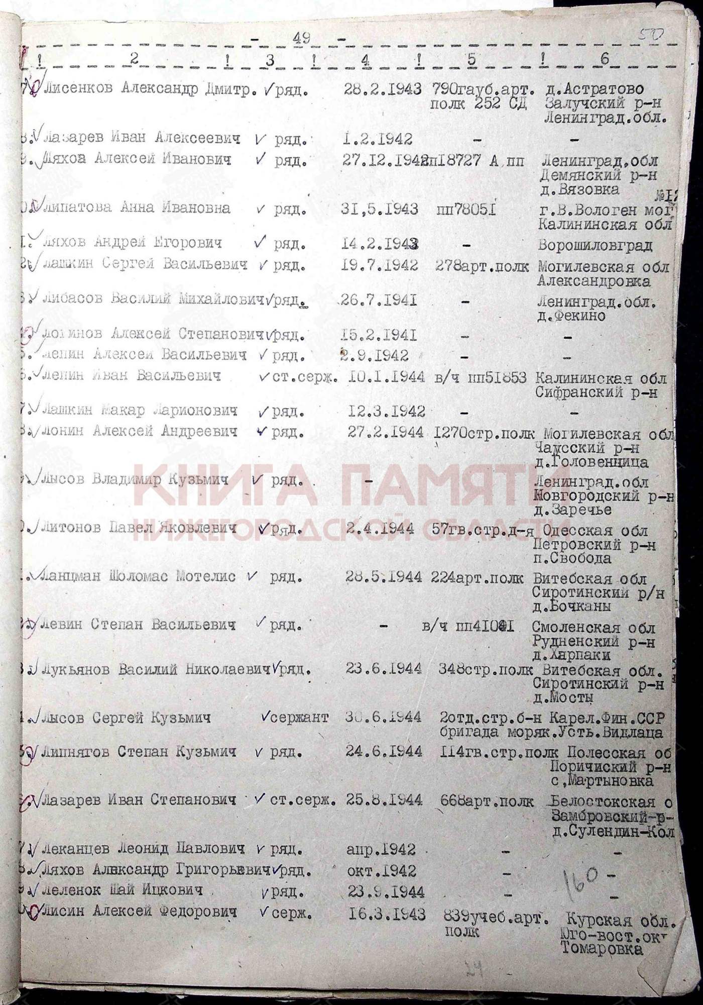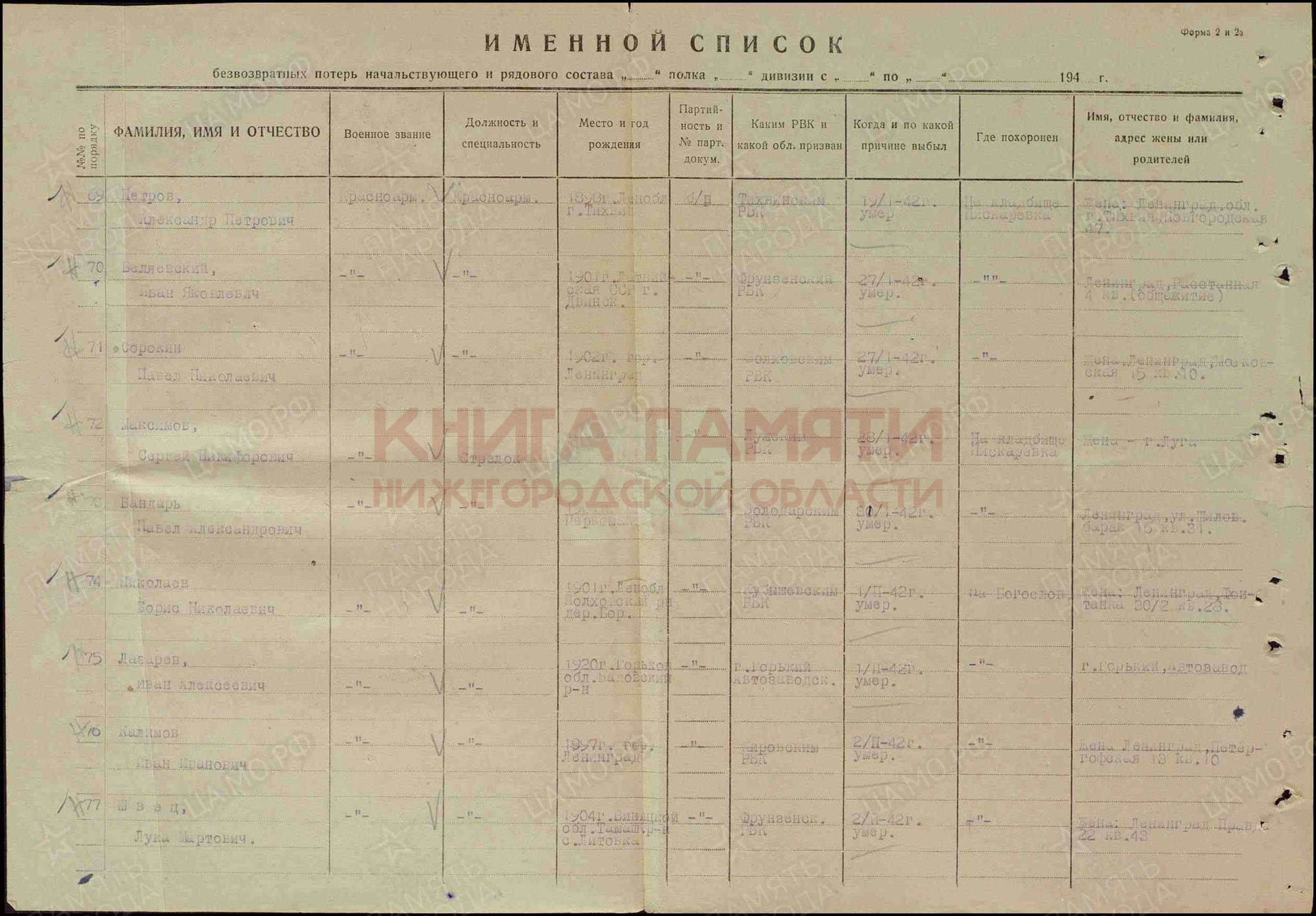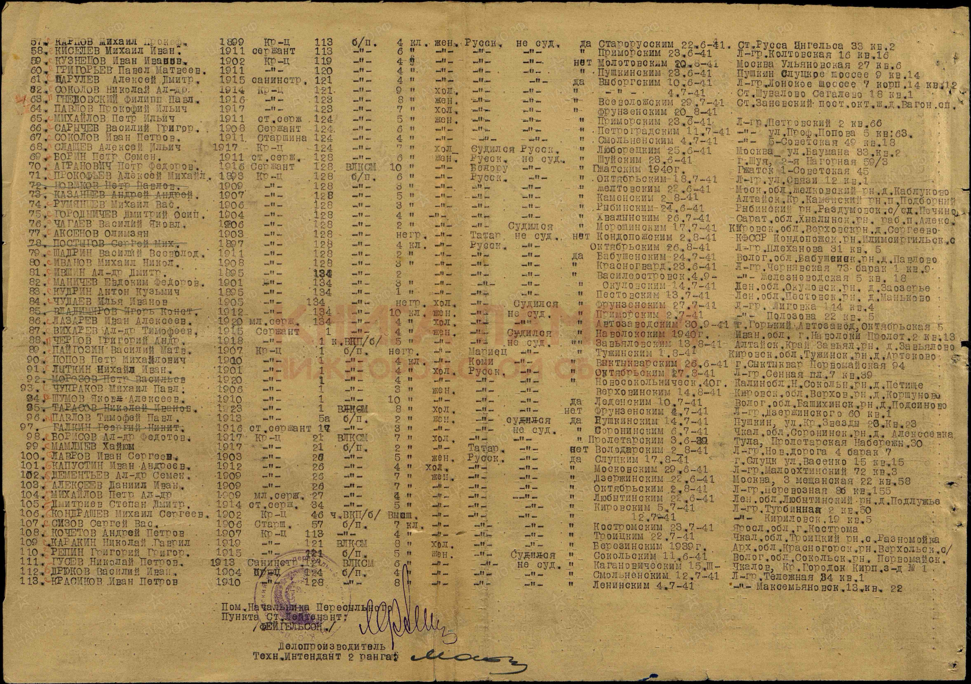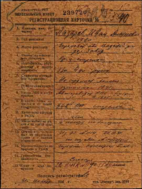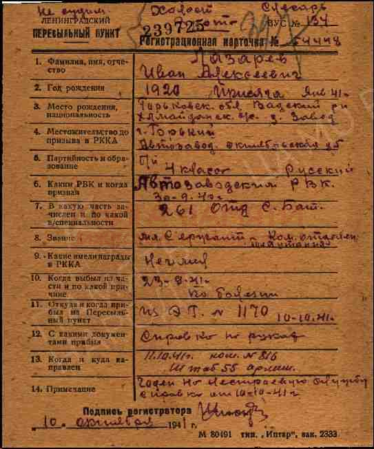 Ленинградский военно-пересыльный пункт, Ленинградская обл., г. Ленинград;