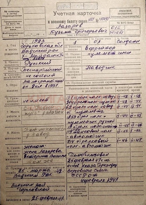 25.02.1947 демобилизован. Умер 06.10.2007 г