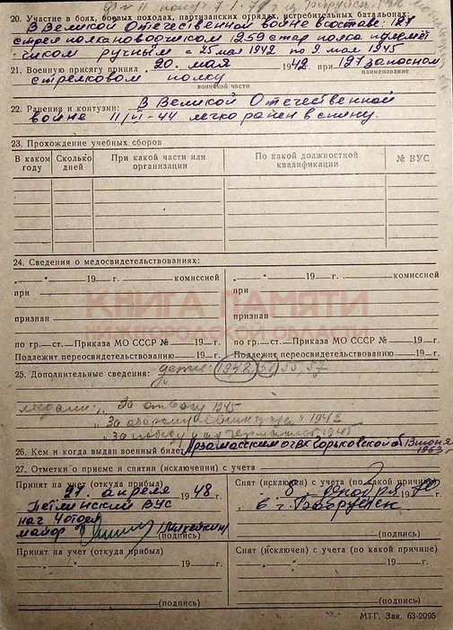 11.06.1944 легко ранен в спину.