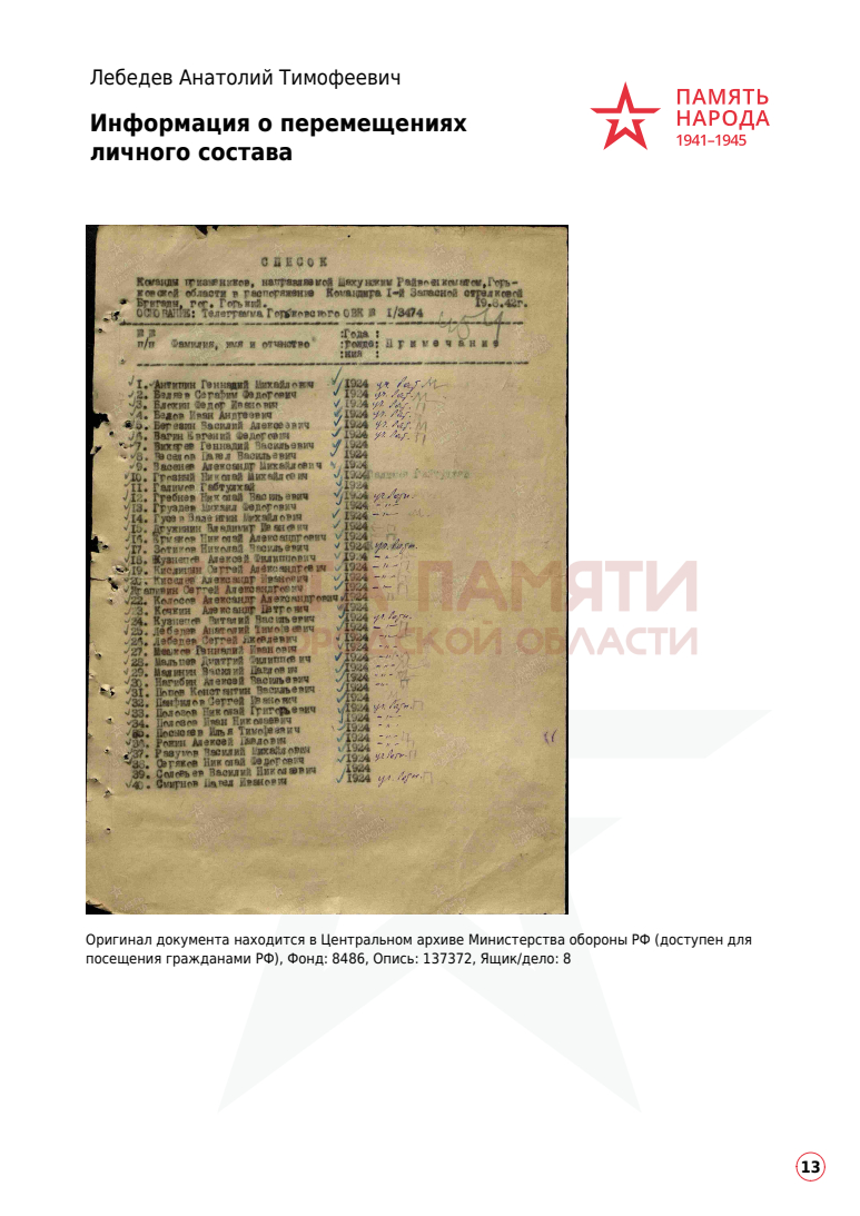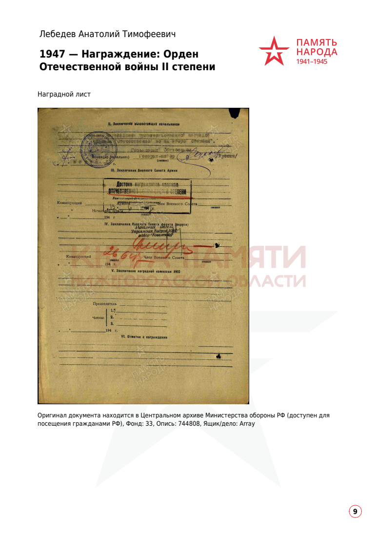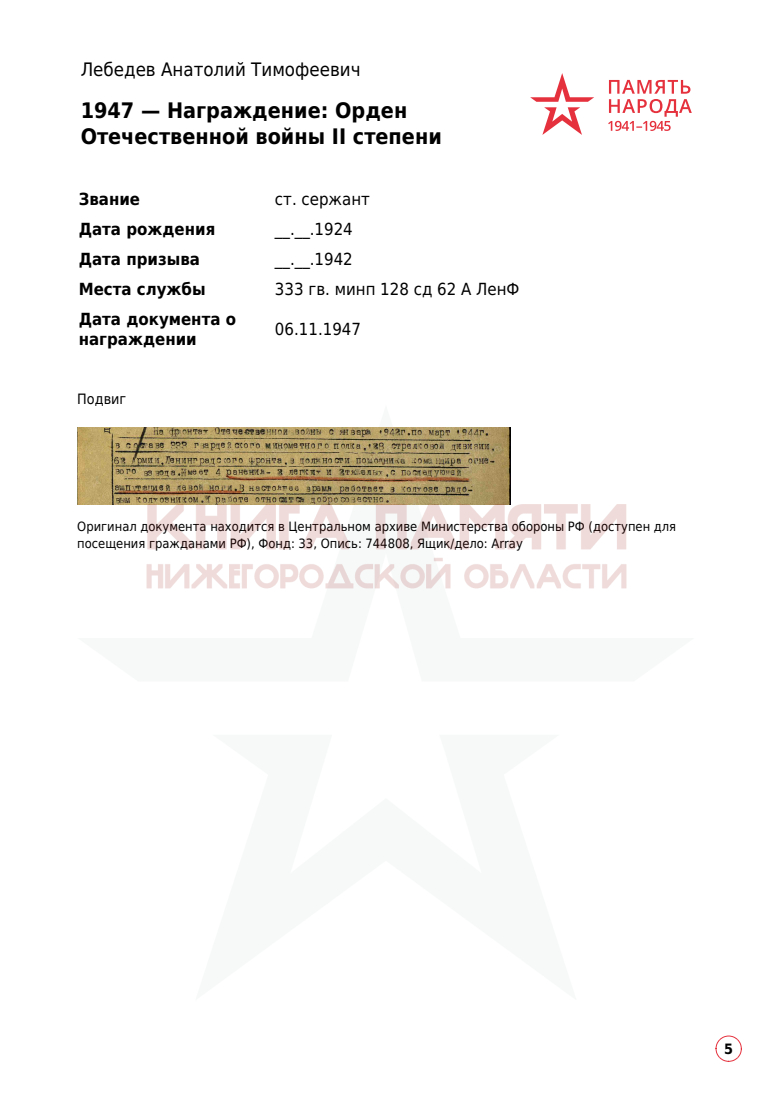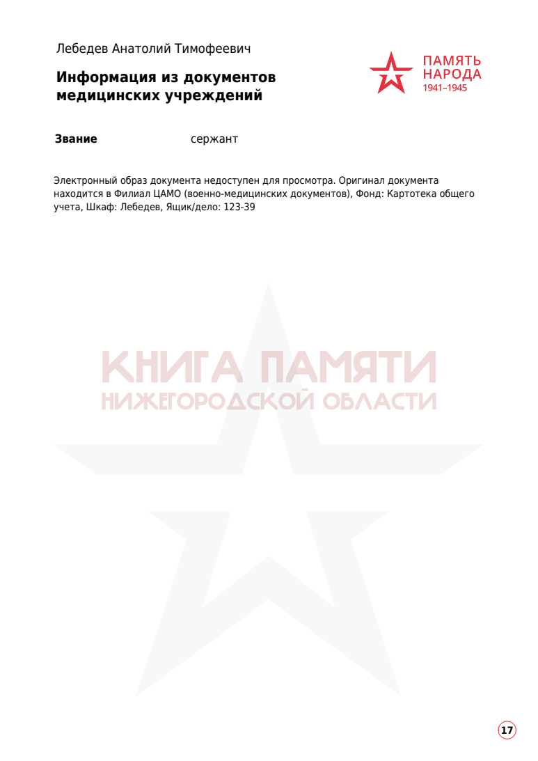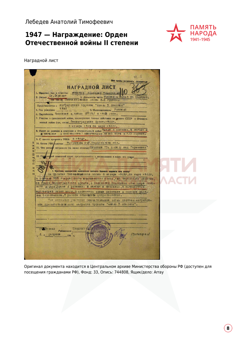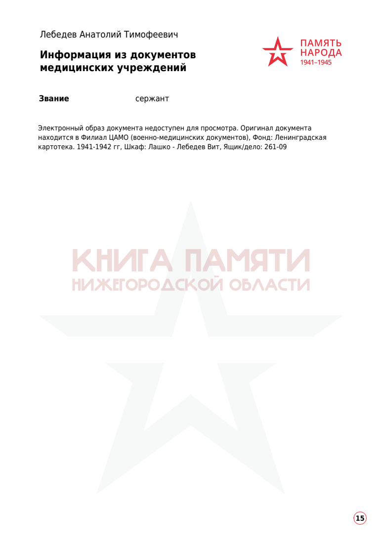 Воинская часть: 533 сп, Дата выбытия: 19.03.1944,Причина выбытия: эвакуирован в тыл, Госпиталь: ЭГ 991