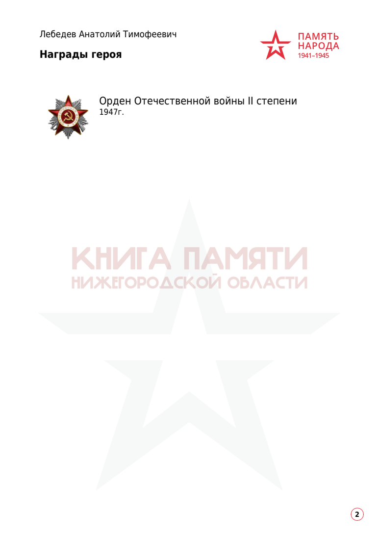 Орден Отечественной войны I степени, орден Отечественной войны II степени (2), Медаль за победу над Германией в Великой Отечественной войне 1941-1945 гг.