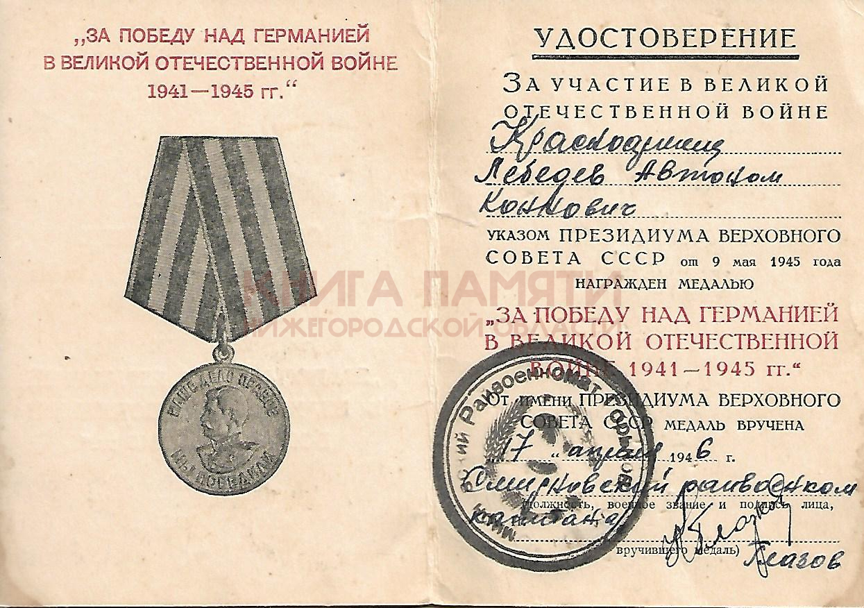 Медаль «За победу над Германией в Великой Отечественной войне 1941–1945 гг.»