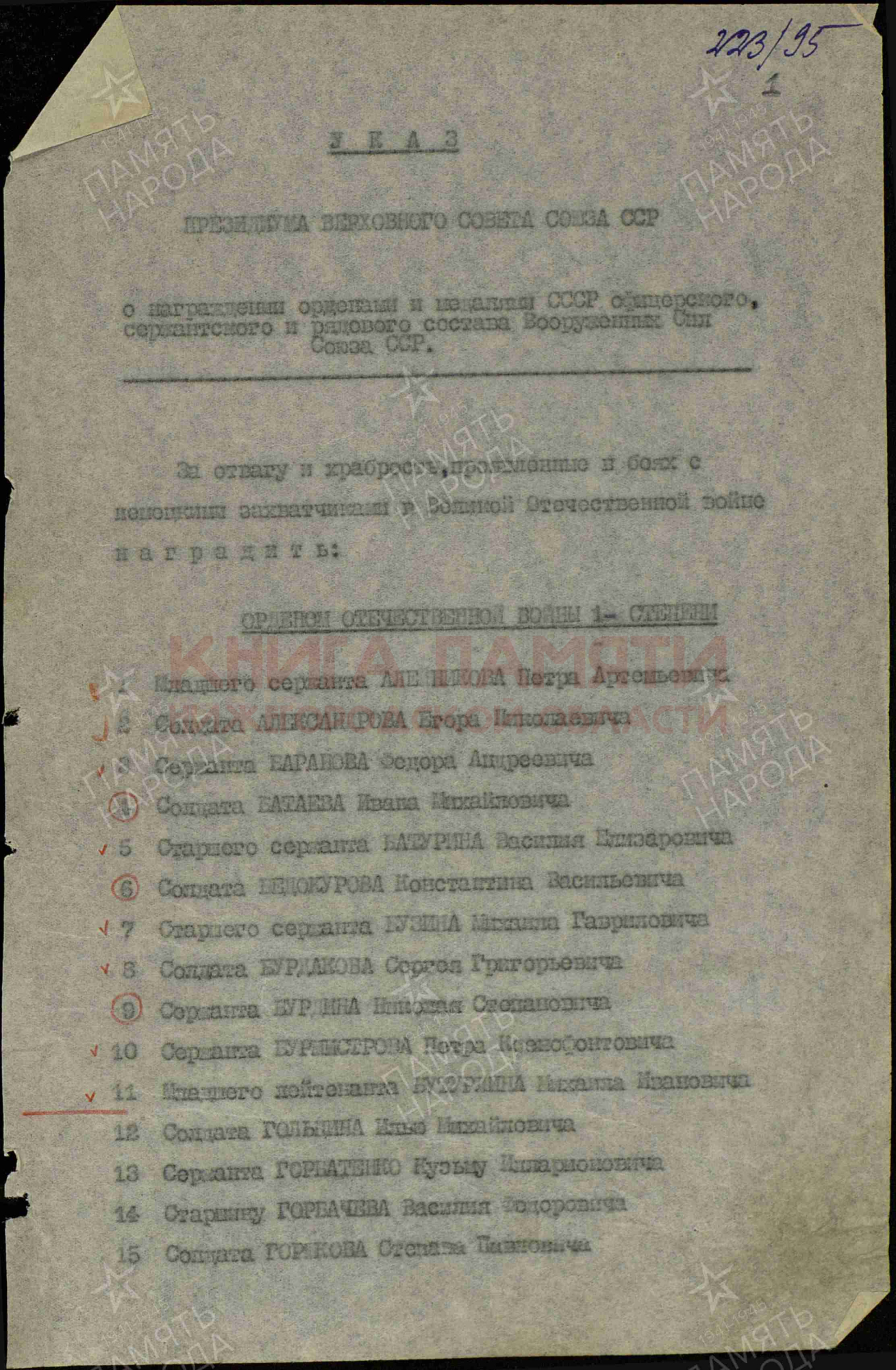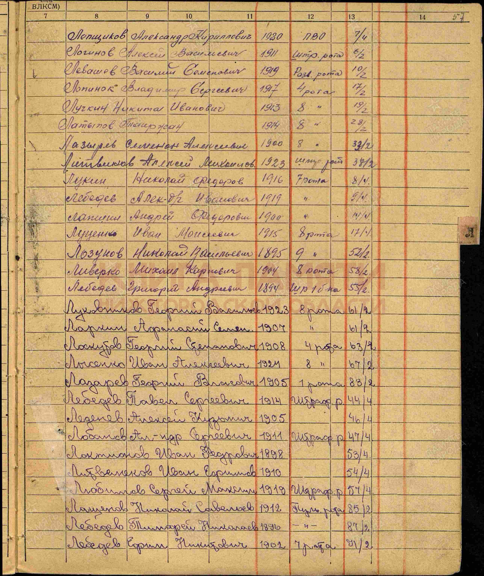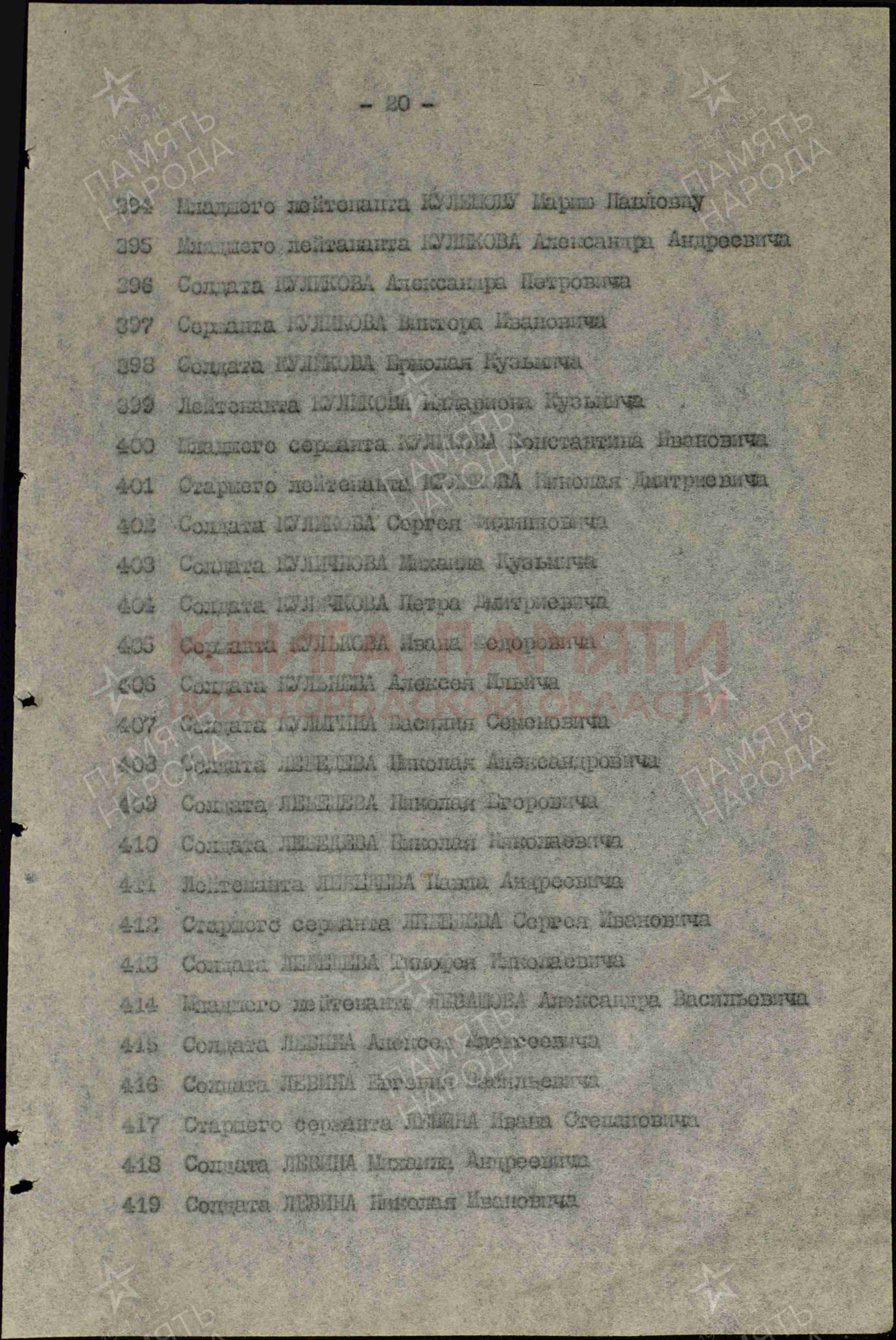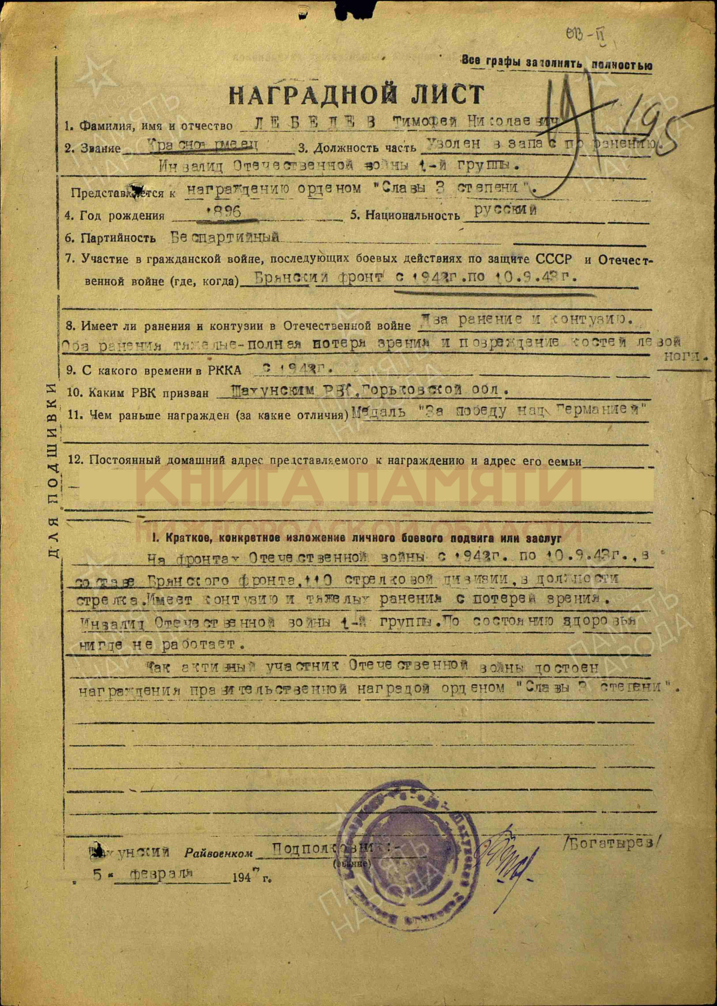 Последнее место службы: 1287 сп, Дата выбытия: 26.04.1944, Причина выбытия: выбыл из госпиталя, Госпиталь: ЭГ 945