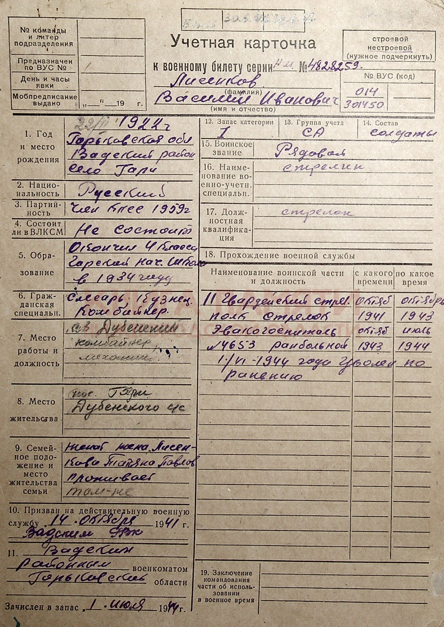 1.07.1944 г. уволен по ранению.