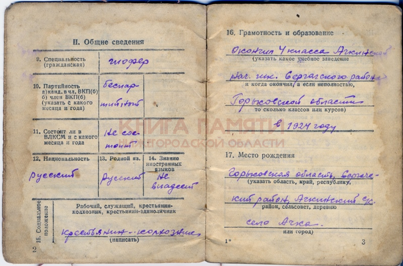 Мой прапрадедушка родился в 1911 году в большой крестьянской семье. Они много работали, выращивали рожь, пшеницу, ячмень, просо. У них была даже своя мельница. Позже, когда появились первые автомобили, мой прапрадедушка выучился на шофёра. Он работал на самой первой машине, которую купили в колхозе. Прапрадедушка встретил красивую девушку Марию, мою прапрабабушку. Они поженились, и у них родилось четверо детей, два сына и две дочки. Одна из дочек - моя прабабушка Валя, которую я помню и люблю. А другая дочка – моя прабабушка Лида, с которой я очень дружилась и часто ходила к ней в гости. А сыновей, к сожалению, я уже не видела, они умерли раньше, чем я родилась.