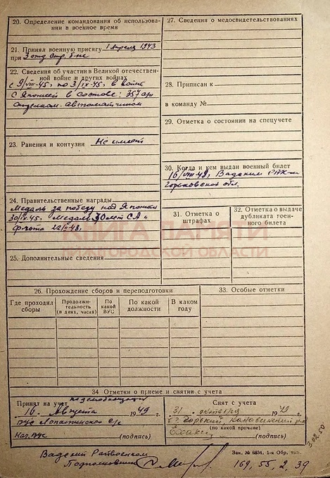 Демобилизован 3.07.1949 г. Умер в 1977 году.