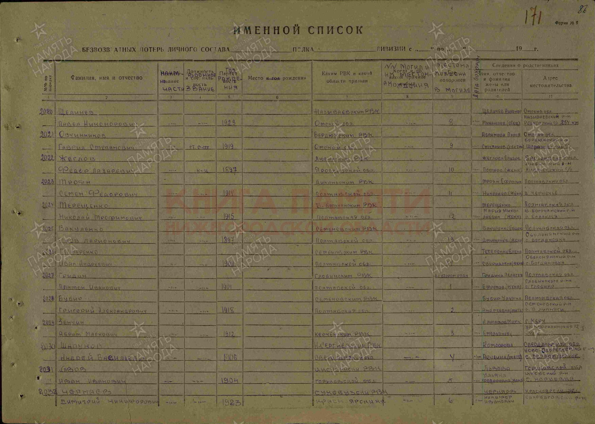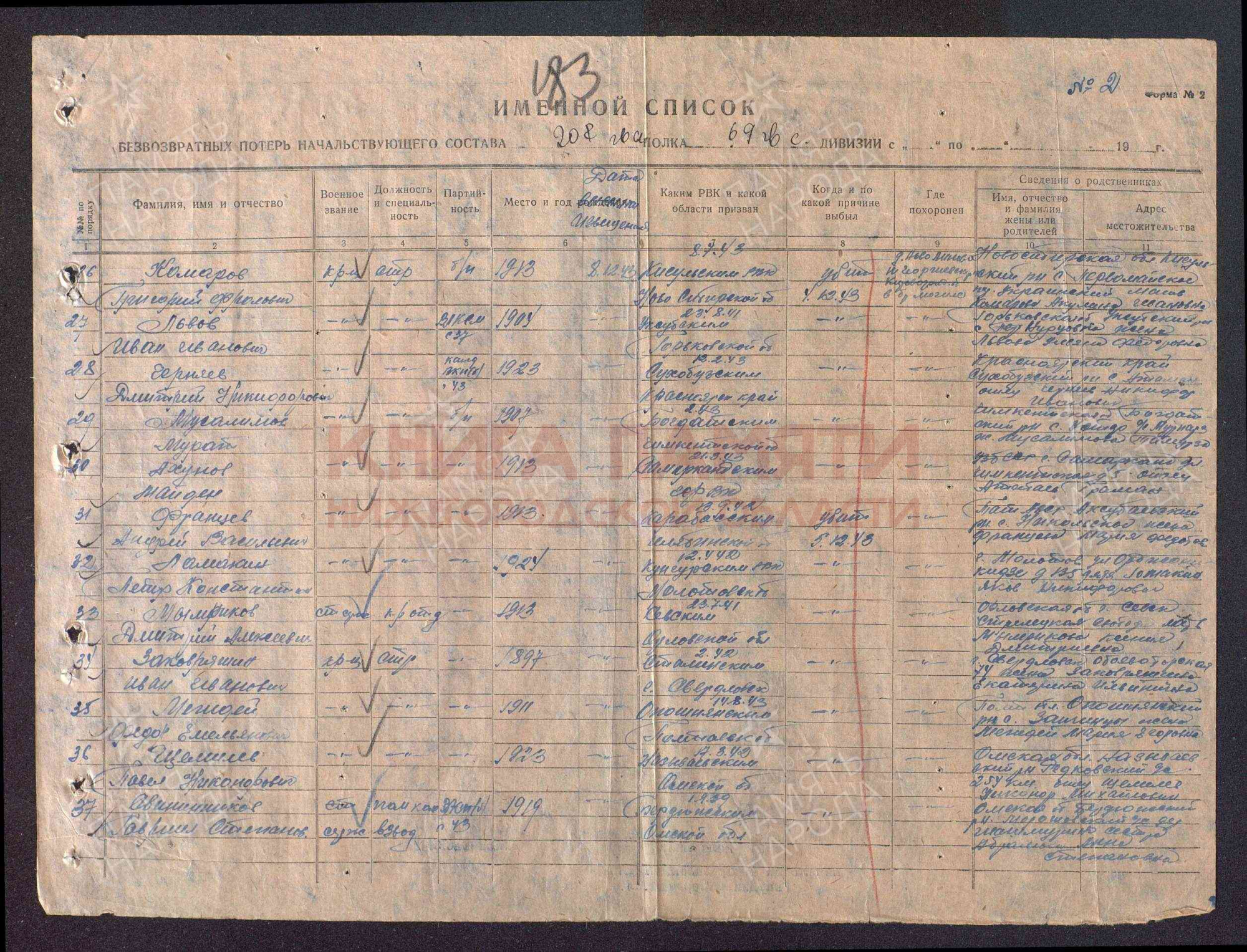 До призыва проживал д. Норковка Выксунского р-на Горьковской обл. Дата завершения службы - 12.1943