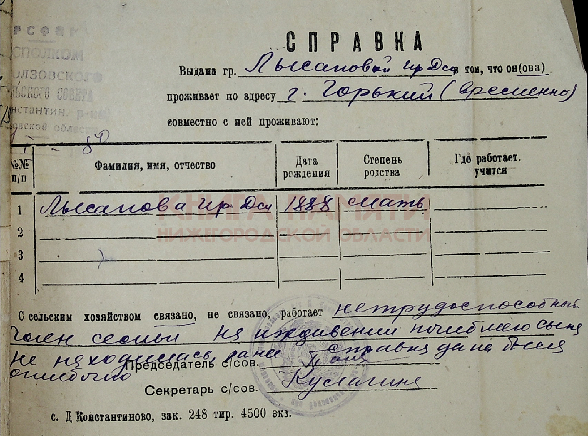 Горьковская обл. Дальнеконстантиновский РВК