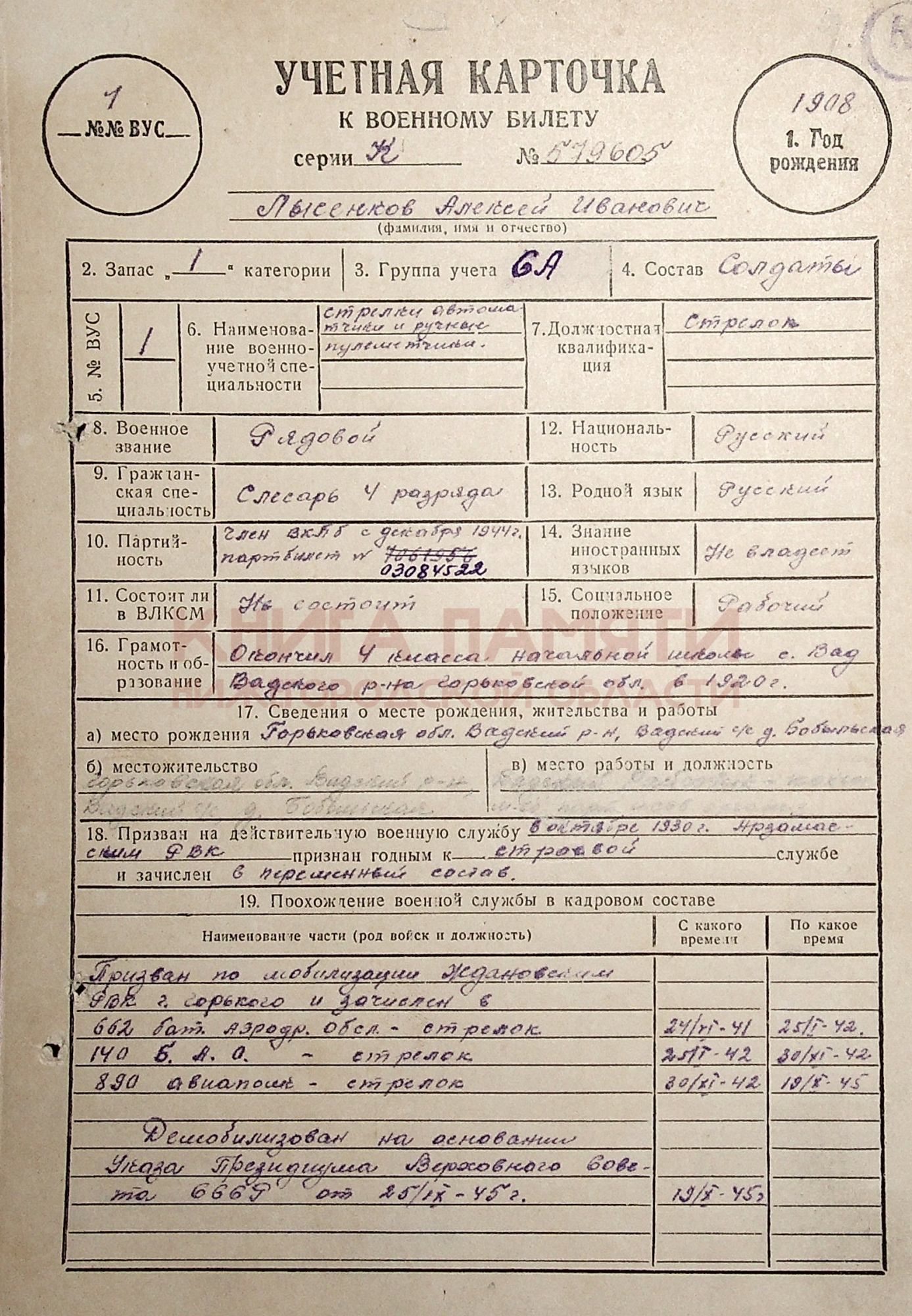 Демобилизован 25.09.1945 Умер в 1978 г.