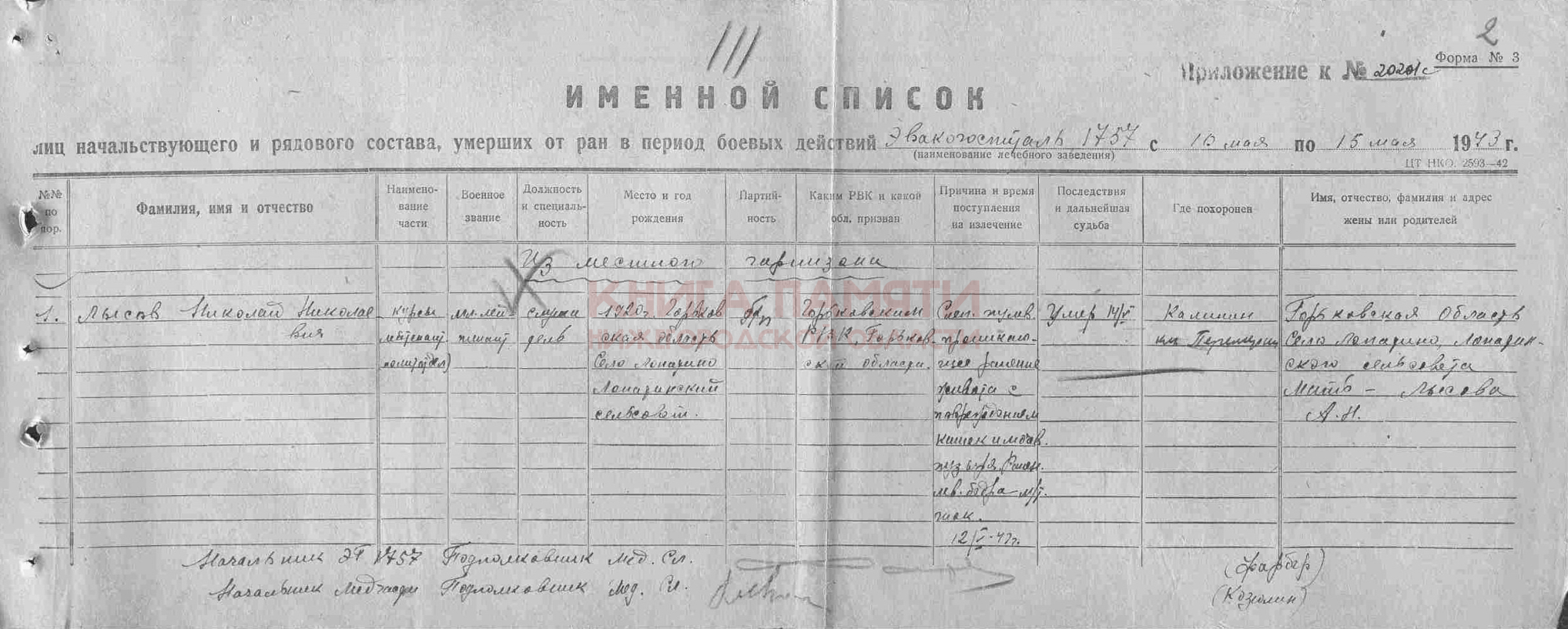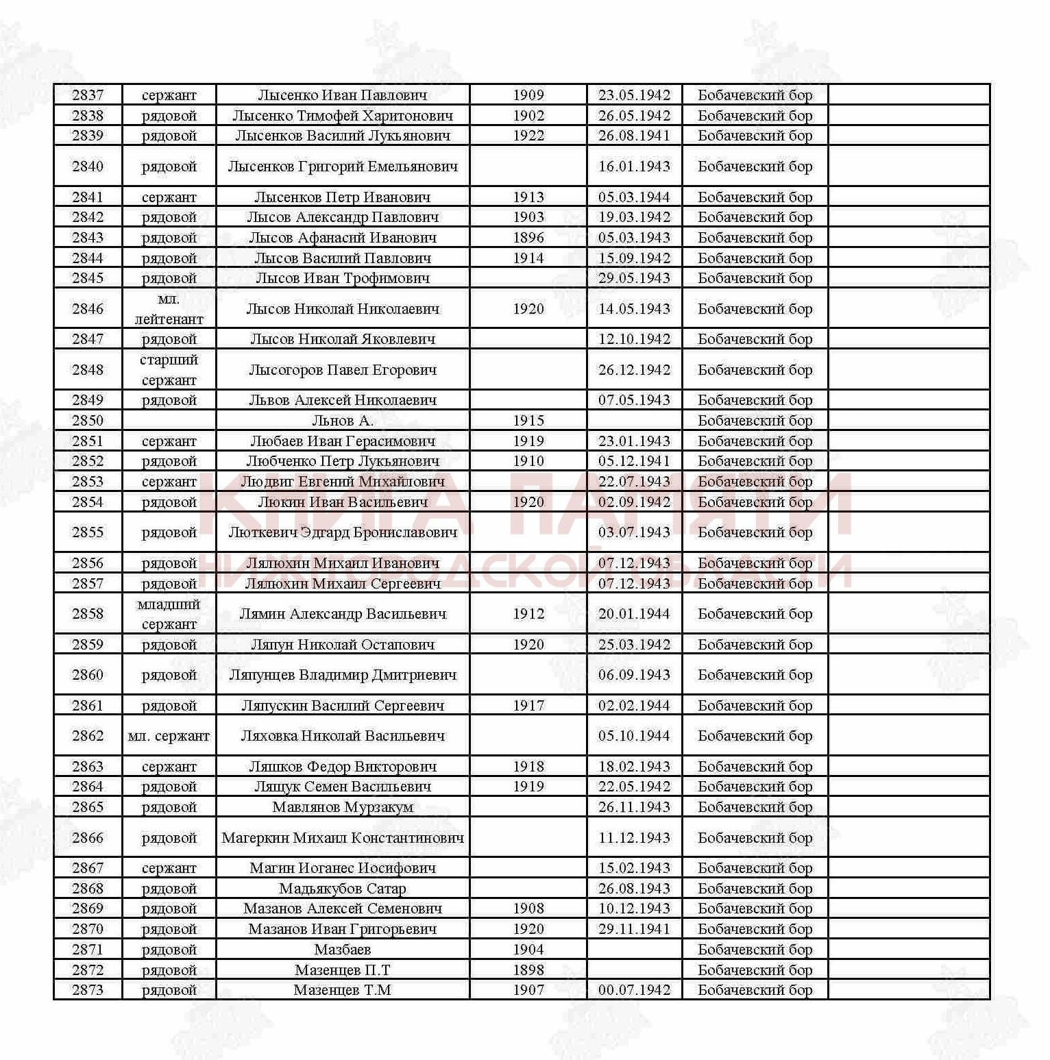 Место захоронения Калининская обл., г. Калинин, Бабачевский бор ;