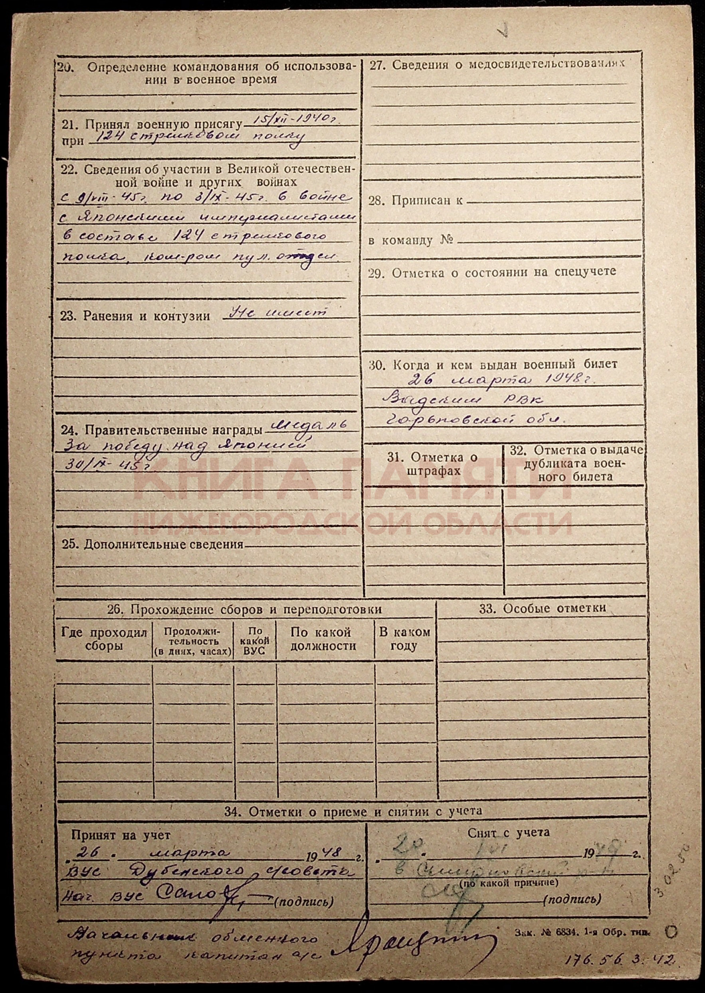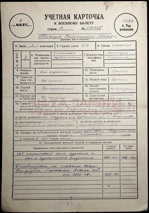 Демобилизован 16.06.1946 г.