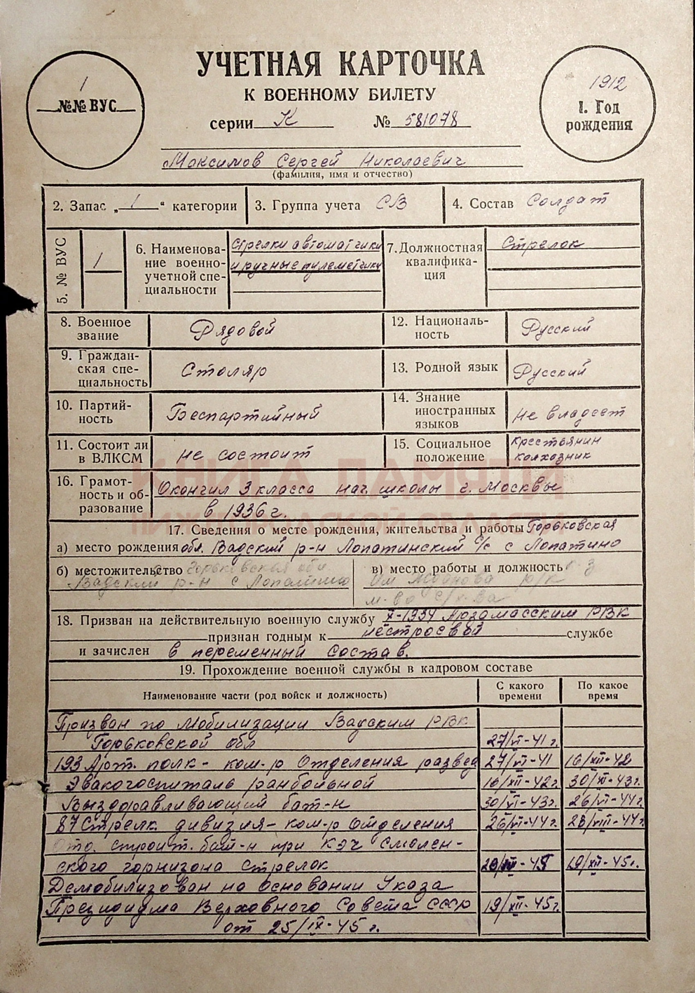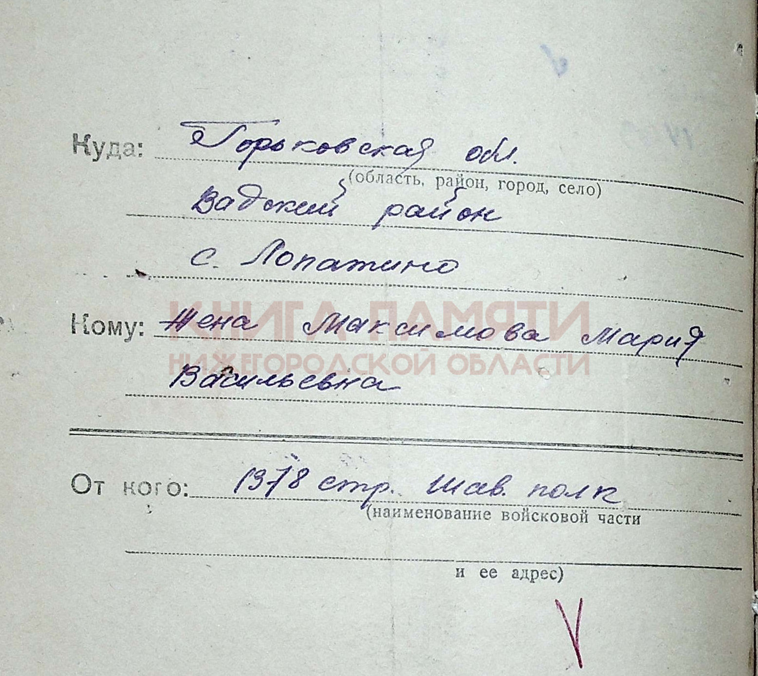 Горьковский военно-пересыльный пункт (он же Нижегородский), Горьковская обл., г. Горький