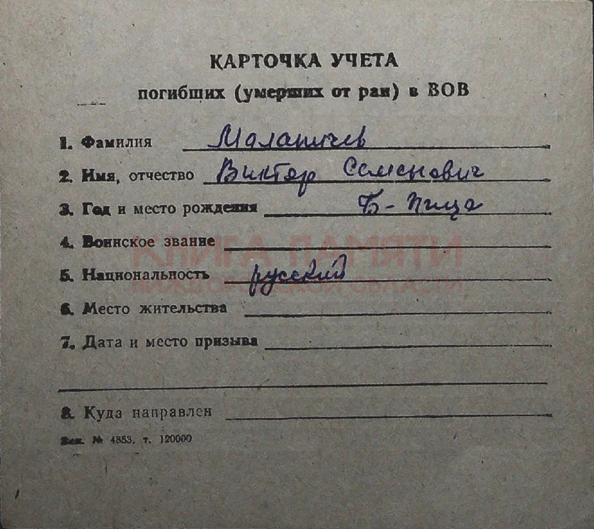 Сведений о дате рождения, дате призыва, службе не имеется.