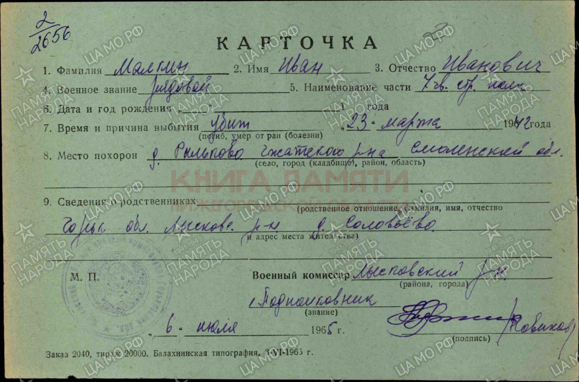 Похоронен в дер. Рыльково Гагаринского р-на Смоленской обл.