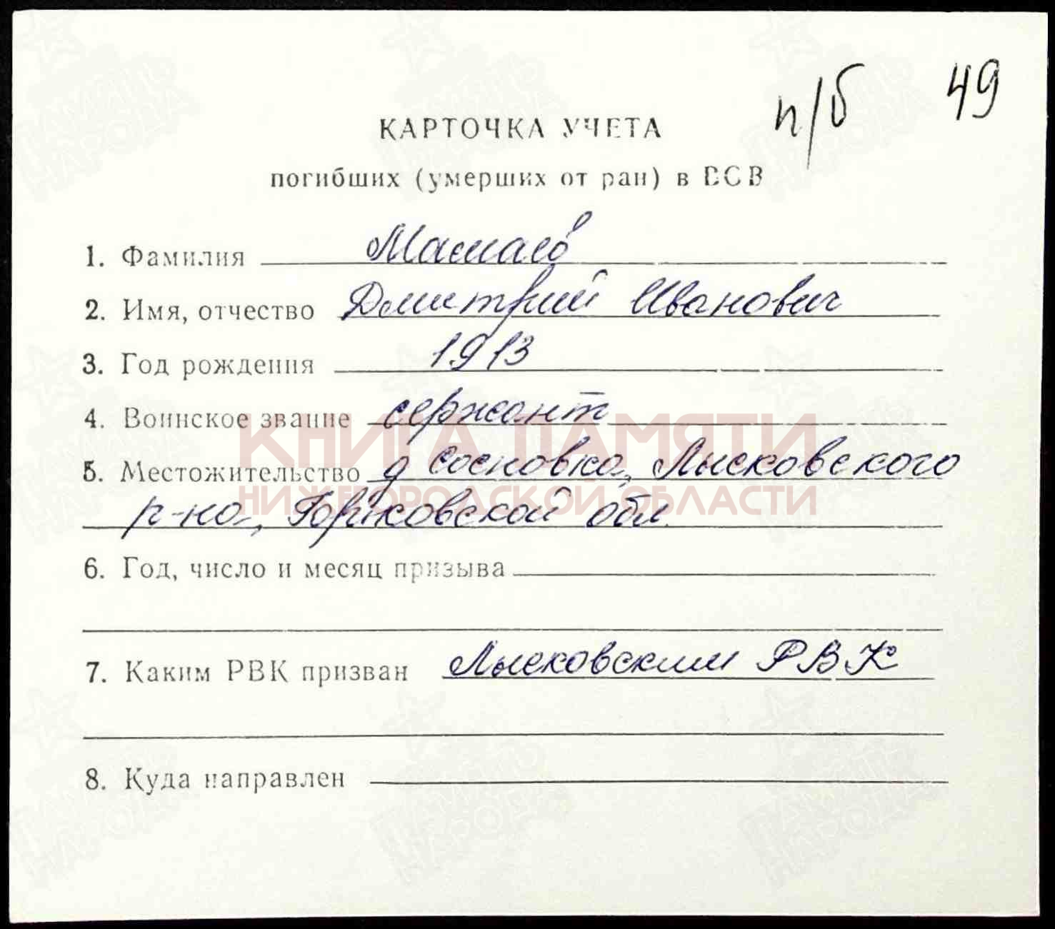 дер. Сосновка Соловьевского с/с Княгининского района Нижегородскойобласти