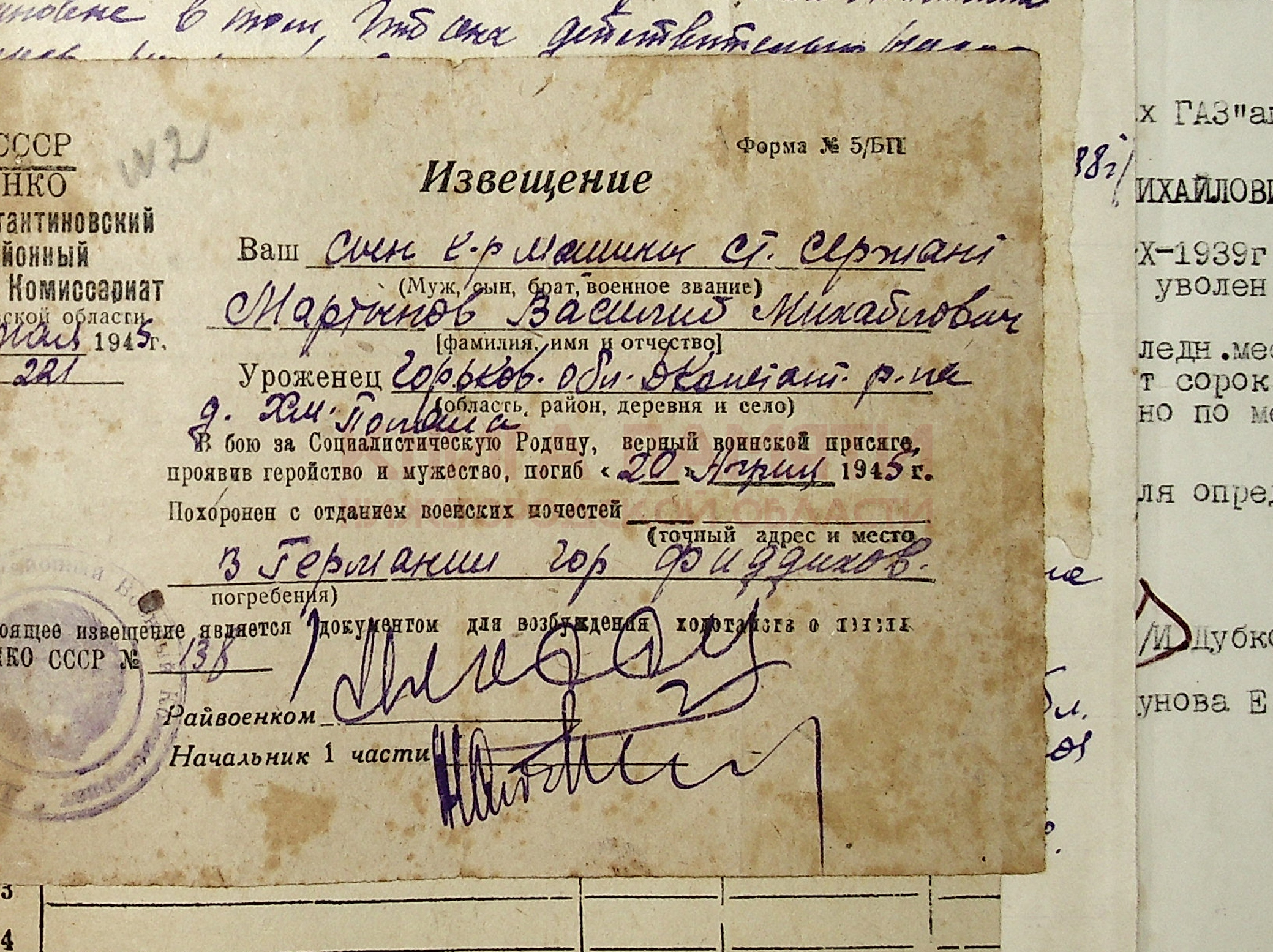 погиб на фронте