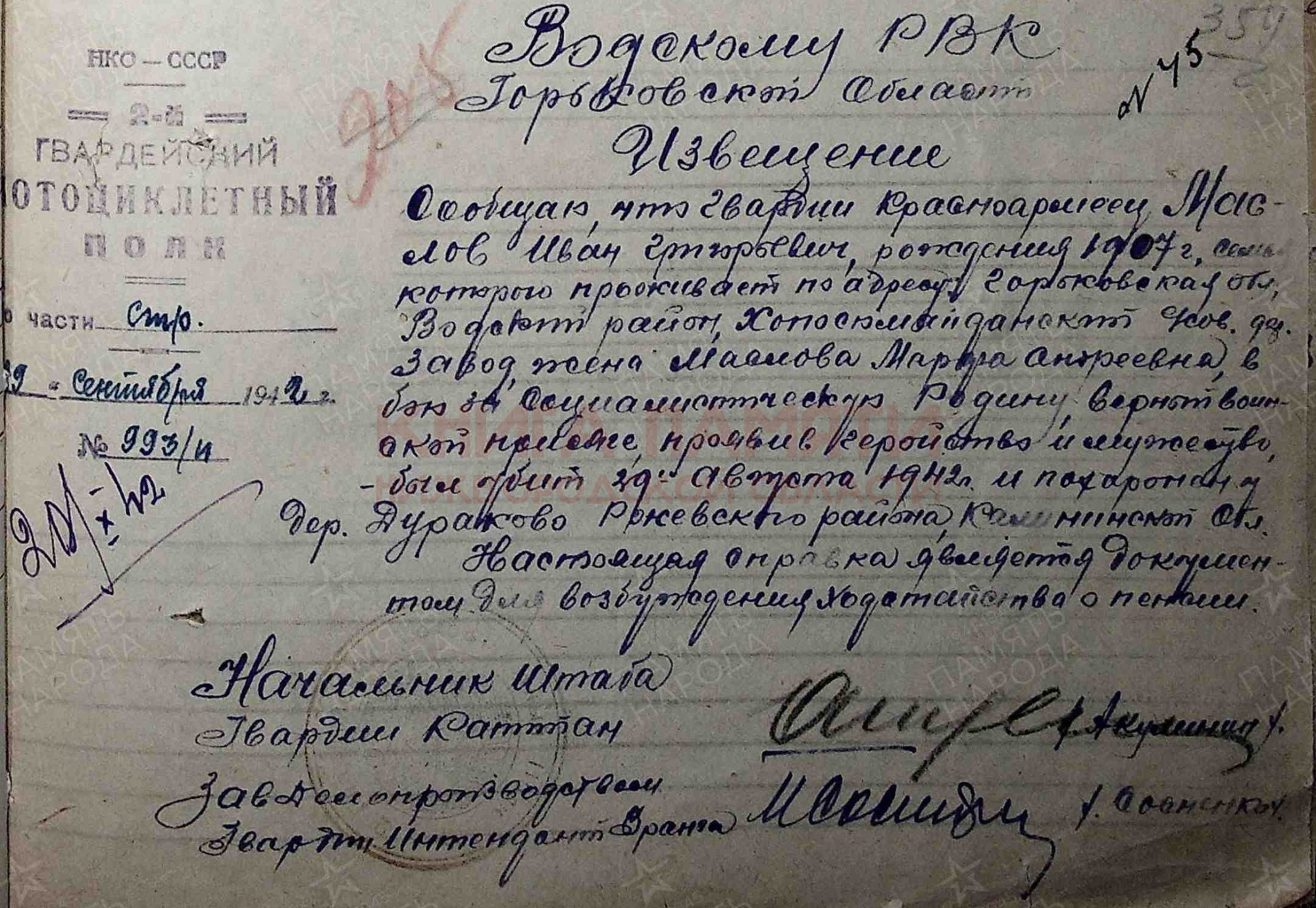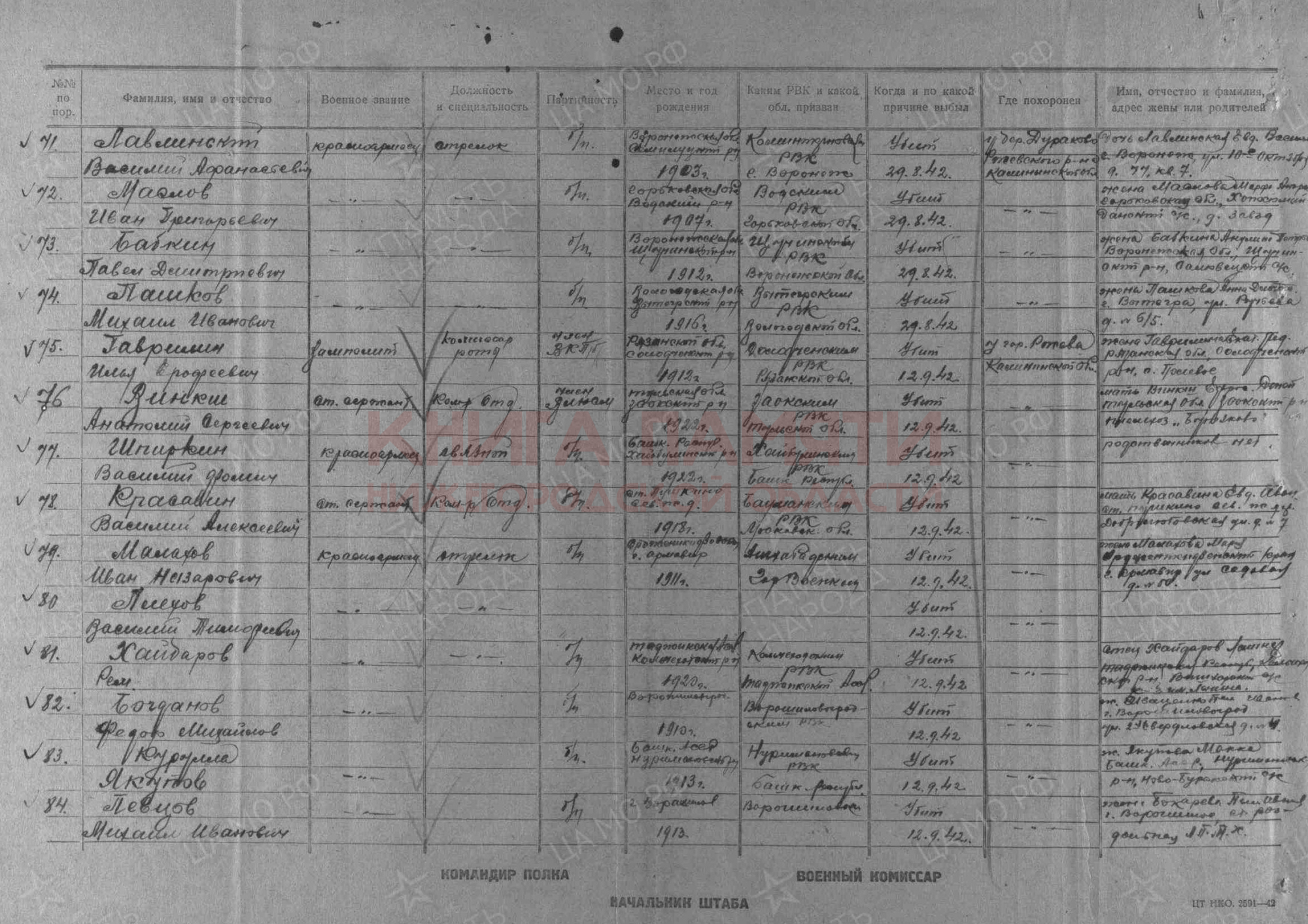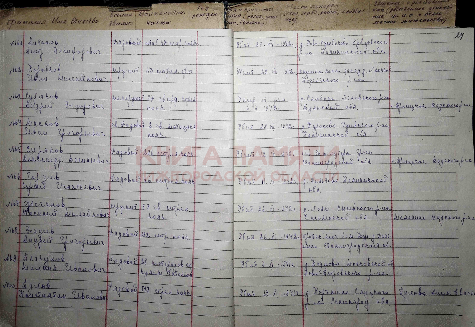Погиб в бою 29 августа 1942 г