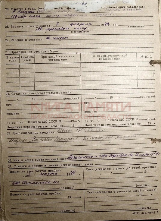 Демобилизован в 1946 г.