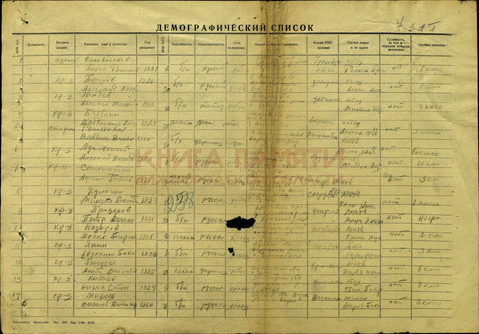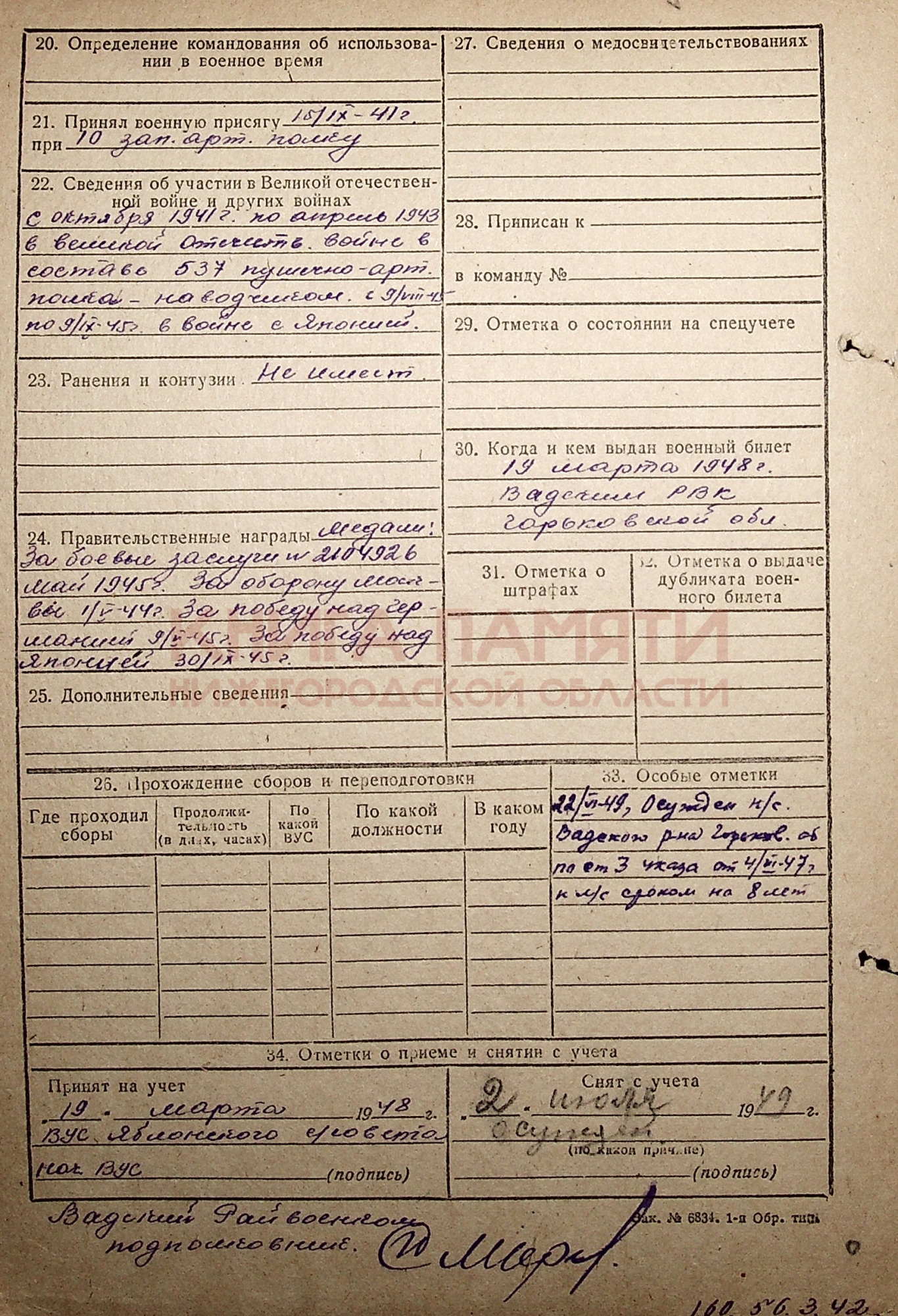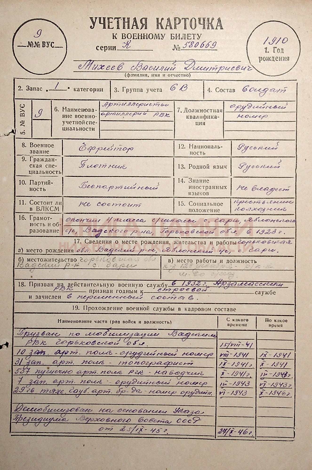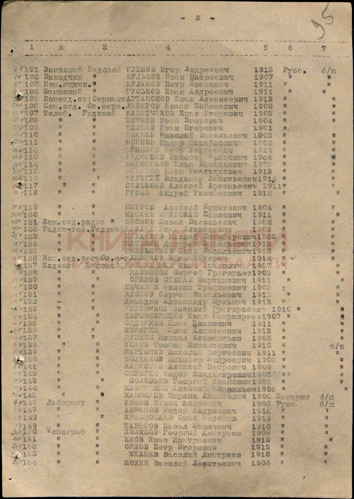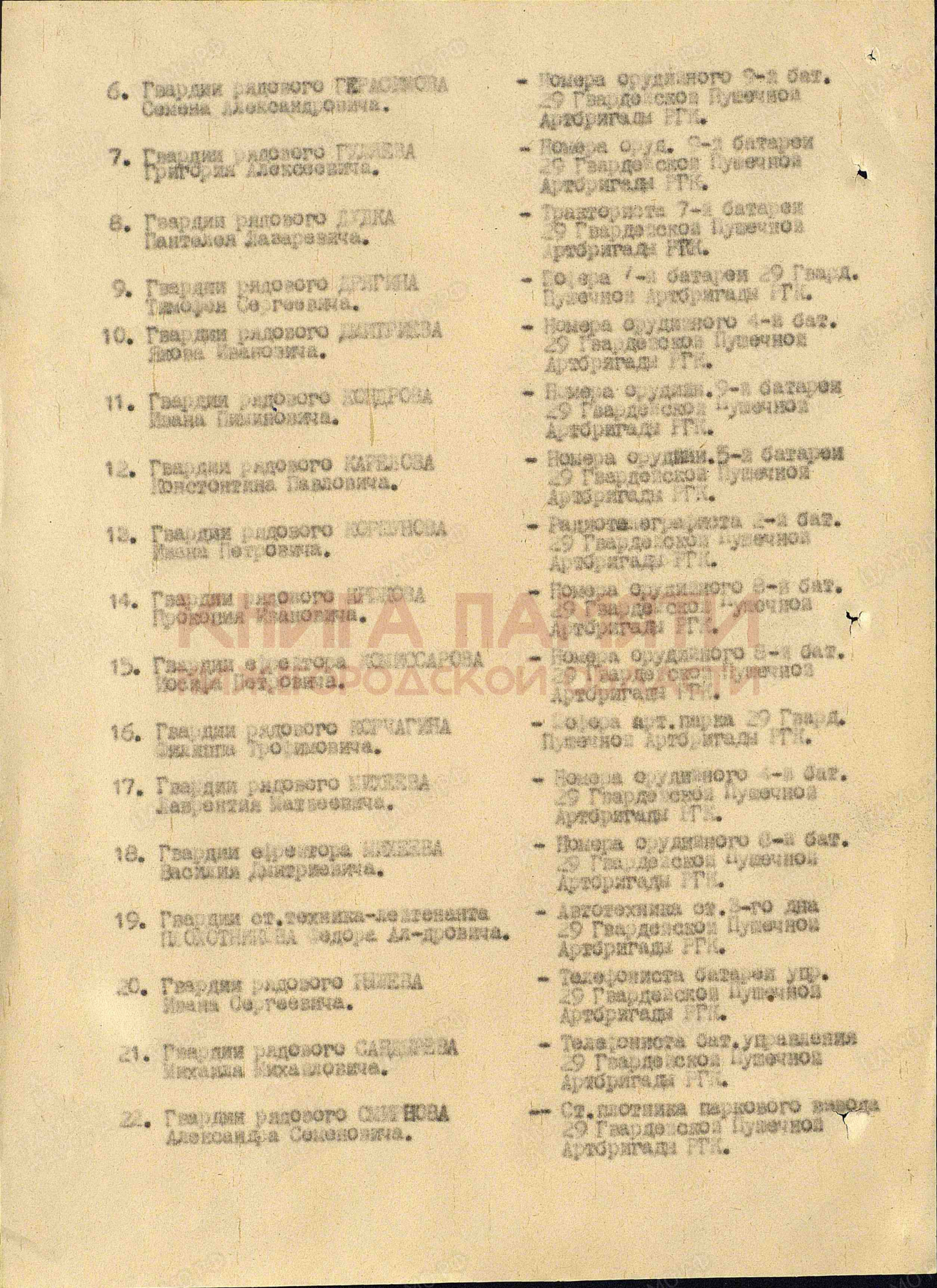 10 запасной артиллерийский полк; 31 запасной артиллерийский полк; 537 пушечно артиллерийский полк РГК; 7 запаной артиллерийский полк Западного фронта, 2 Белорусского фронта; 29 гвардейская тяжелая гаубичная артиллерийская бригада; 206 фронтовой запасной стрелковый полк; 175 армейский запасной стрелковый полк; 202 запасной стрелковый полк; 10 запасной батальон связи 29 запасной стрелковой бригады; 10 запасный кавалерийский полк