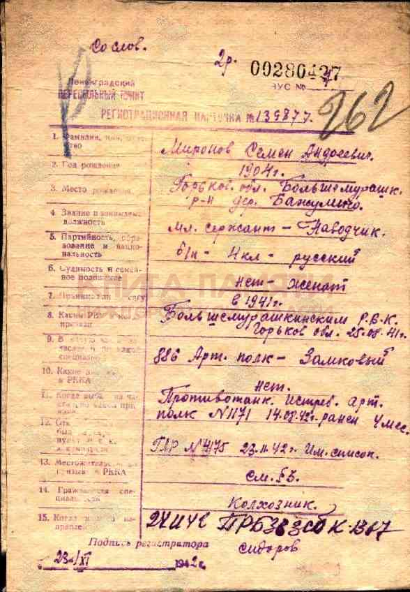 Ленинградский военно-пересыльный пункт, Ленинградская обл., г. Ленинград