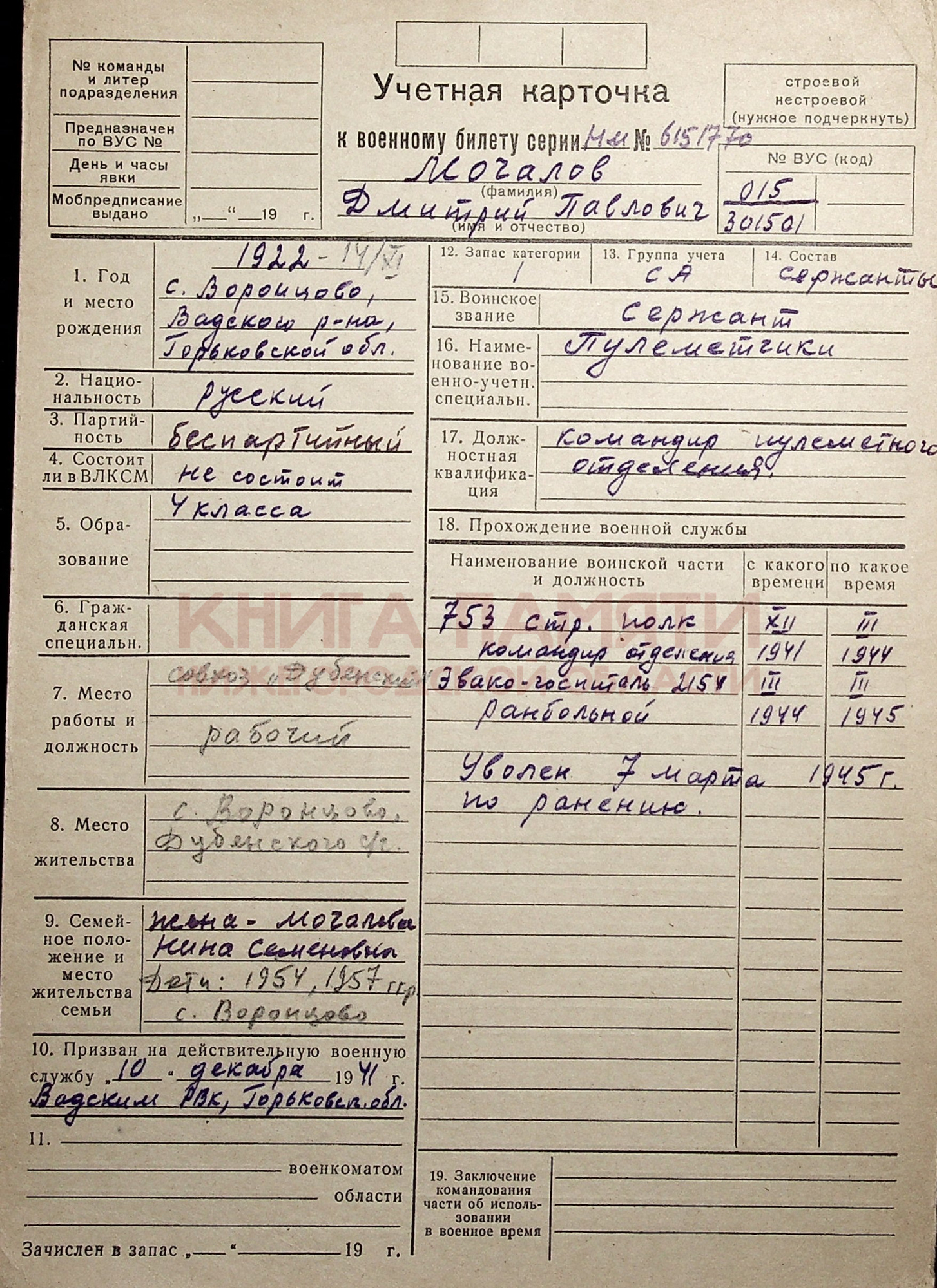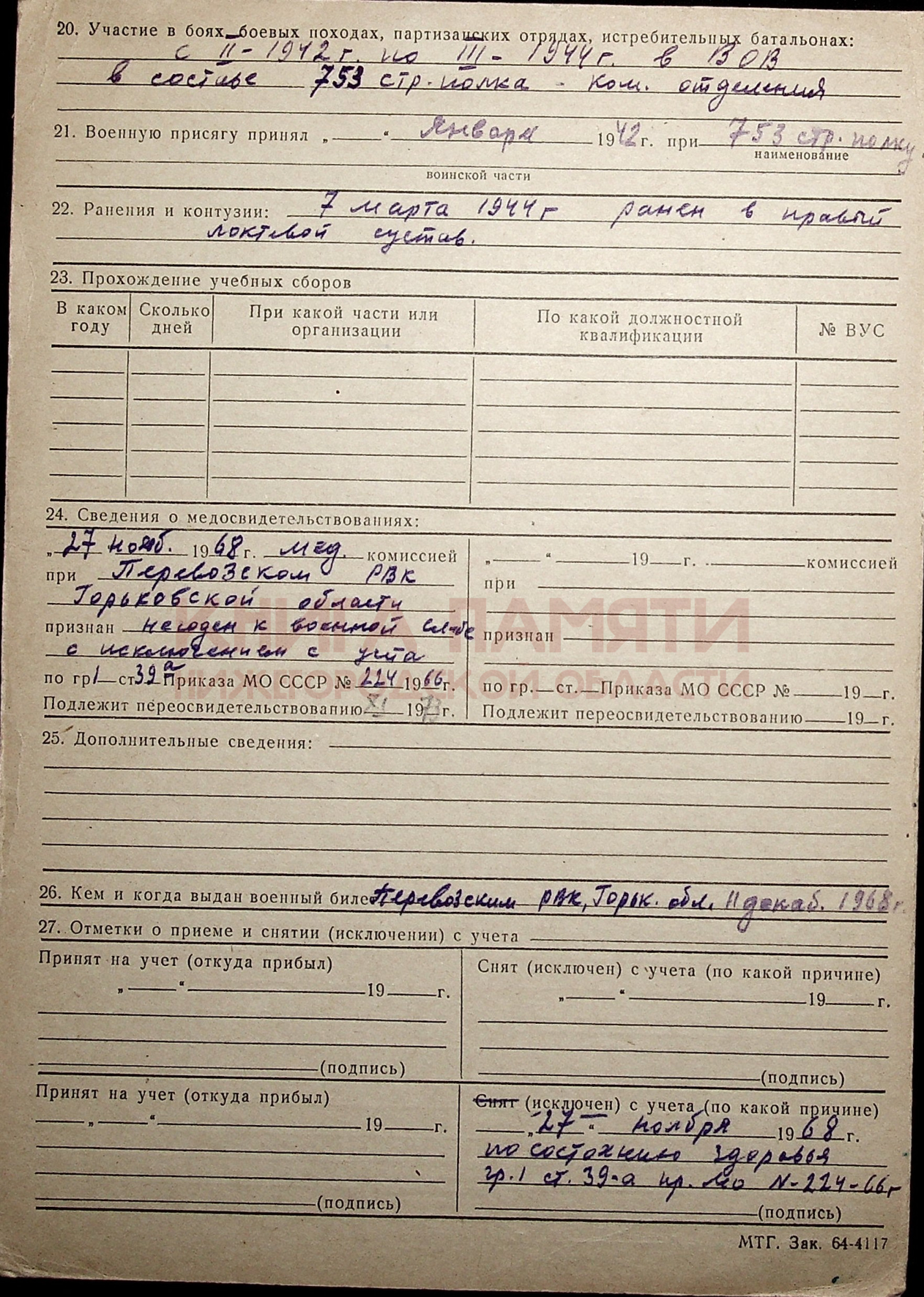 753 стрелковый полк 192 стрелковой дивизии (II); Арзамасский РВК, Горьковская обл., Арзамасский р-н