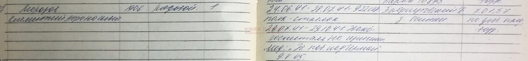 с 28.07.1941 по 29.10.1941 - эвакогоспиталь - на излечении.