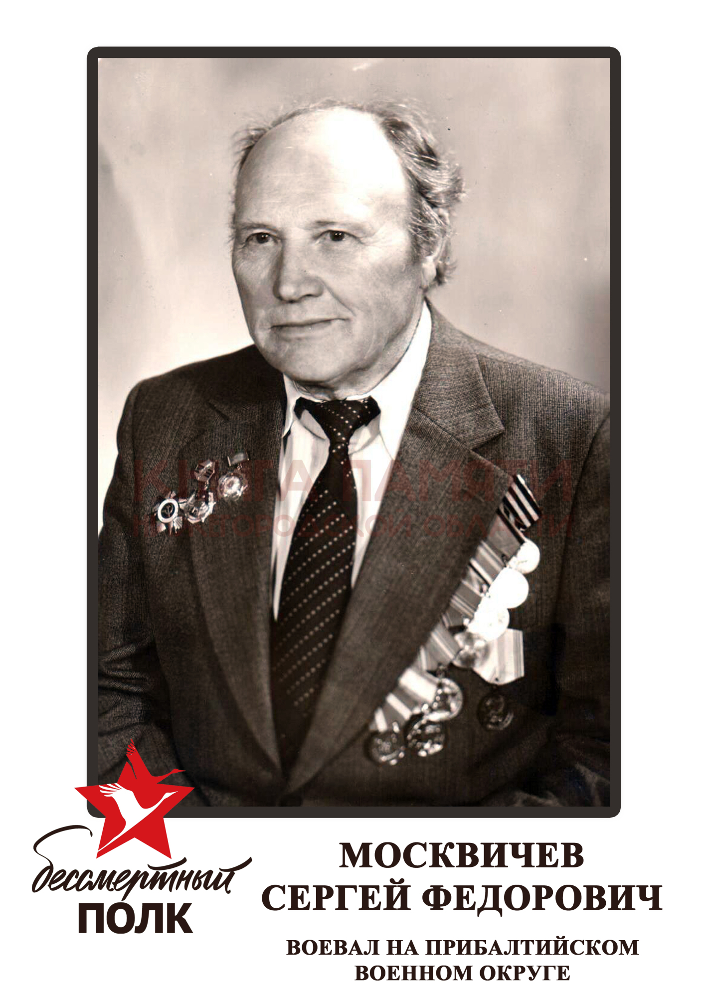 Война закончилась для Сергея Федоровича Москвичева в Латвии. Еще год после ее окончания он служил в армии. Только в 1946 году вернулся домой. Создал семью, родились дети, потом пошли внуки. Вот так всю жизнь помогает то одним то другим. За эти прошедшие годы кем только не работал С. Ф. Москвичев: и фотографом в райбыткомбинате, и фотокорреспондентом газеты «Восход», и столяром. И к каждой работе он относился с уважением. Его работа всегда была на виду, люди ее ценили. Сейчас он пенсионер со стажем. Мечтает 50-летие Победы встретить в добром здравии.