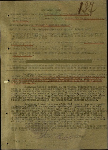 Из наградного листа