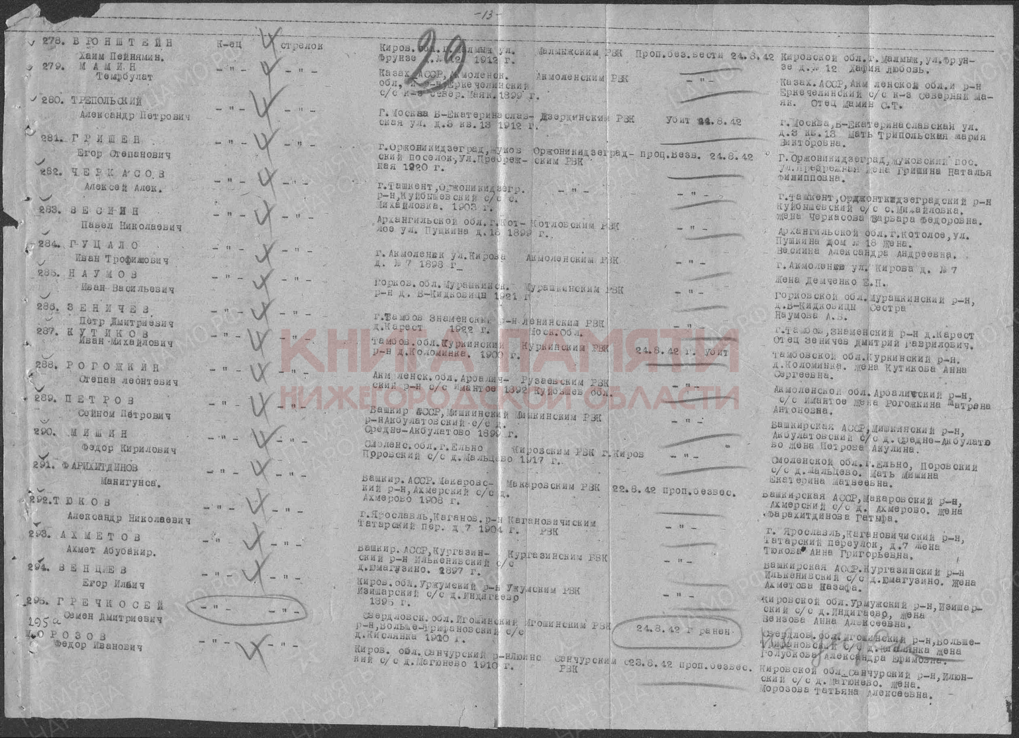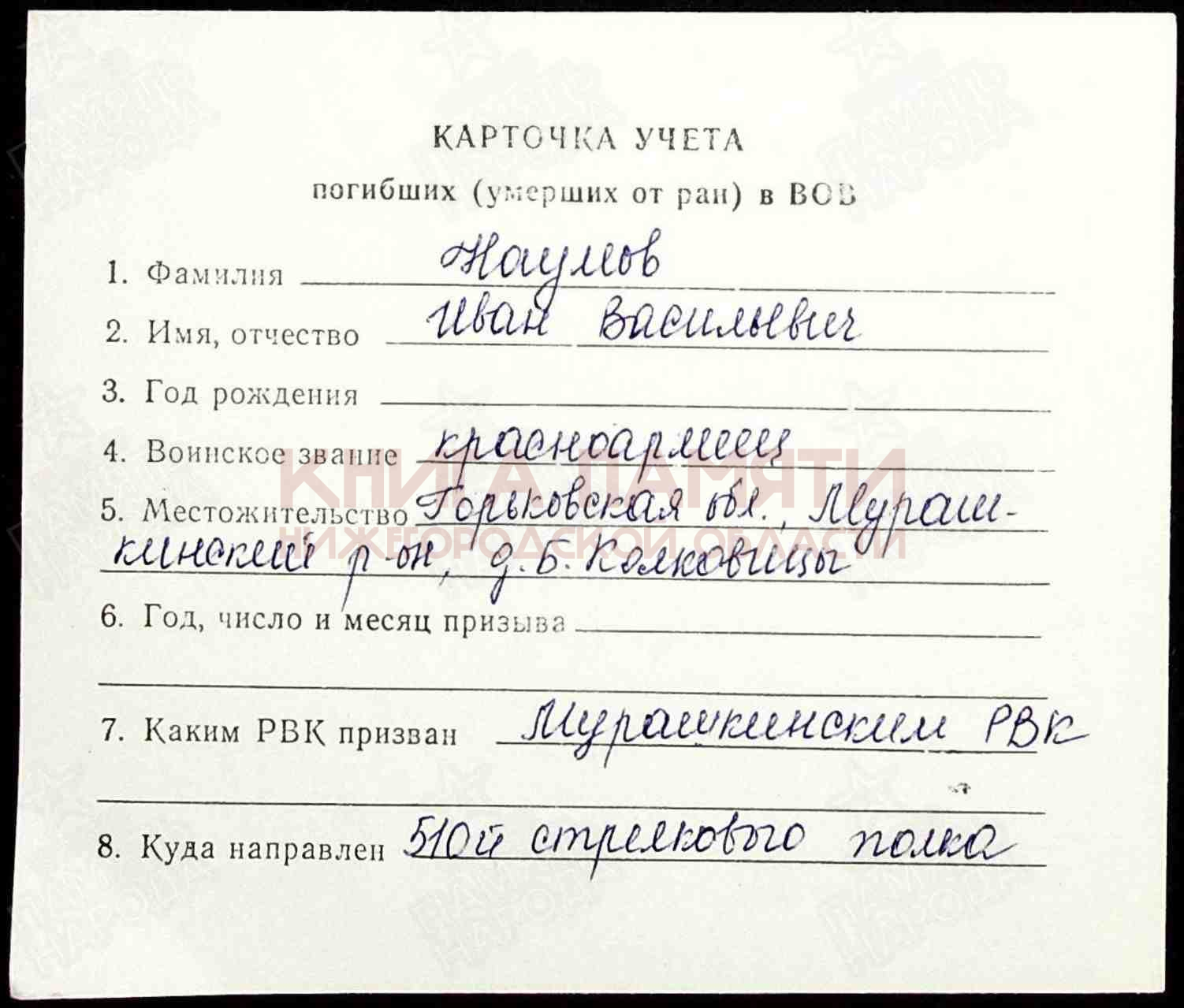 Погиб в бою 24.08.1942, похоронен в орловской обл.