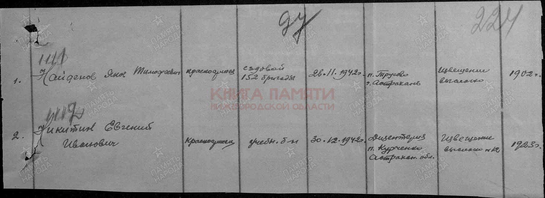 Умер от болезни 30.12.1942. Похоронен Сталинградская обл., Астраханский окр., Курченский с/с, п. Курченко