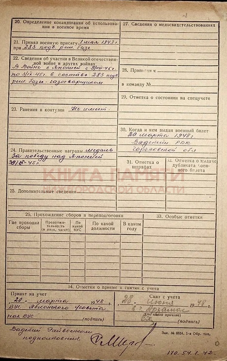 Медаль "За Победу над Японией"; Орден Отечественной войны II степени