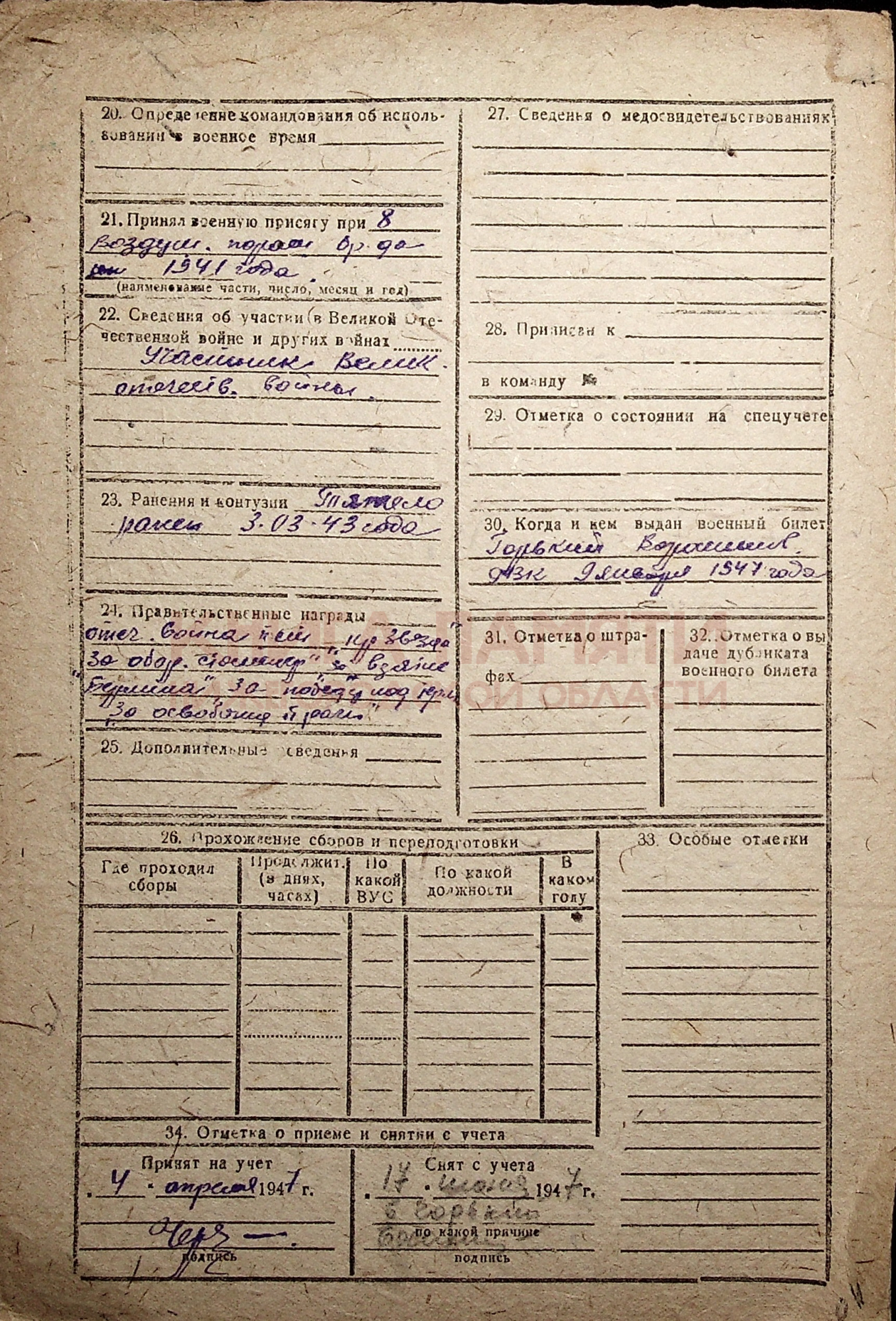 Демобилизован в 1945 г.