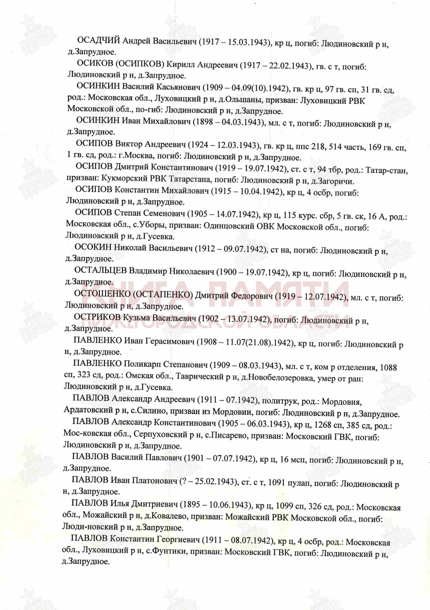 Умер от ран 04.03.1943 Похоронен в дер. Гусевка Людиновского р-на Калужской обл