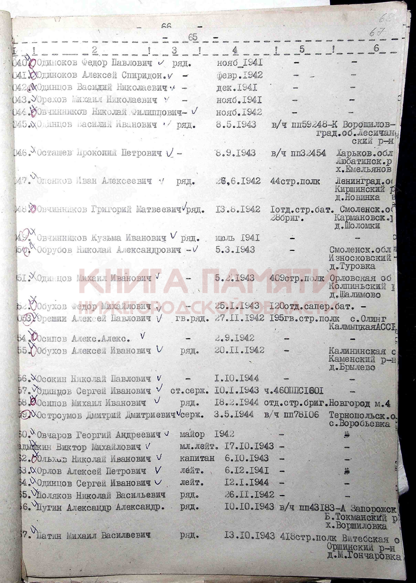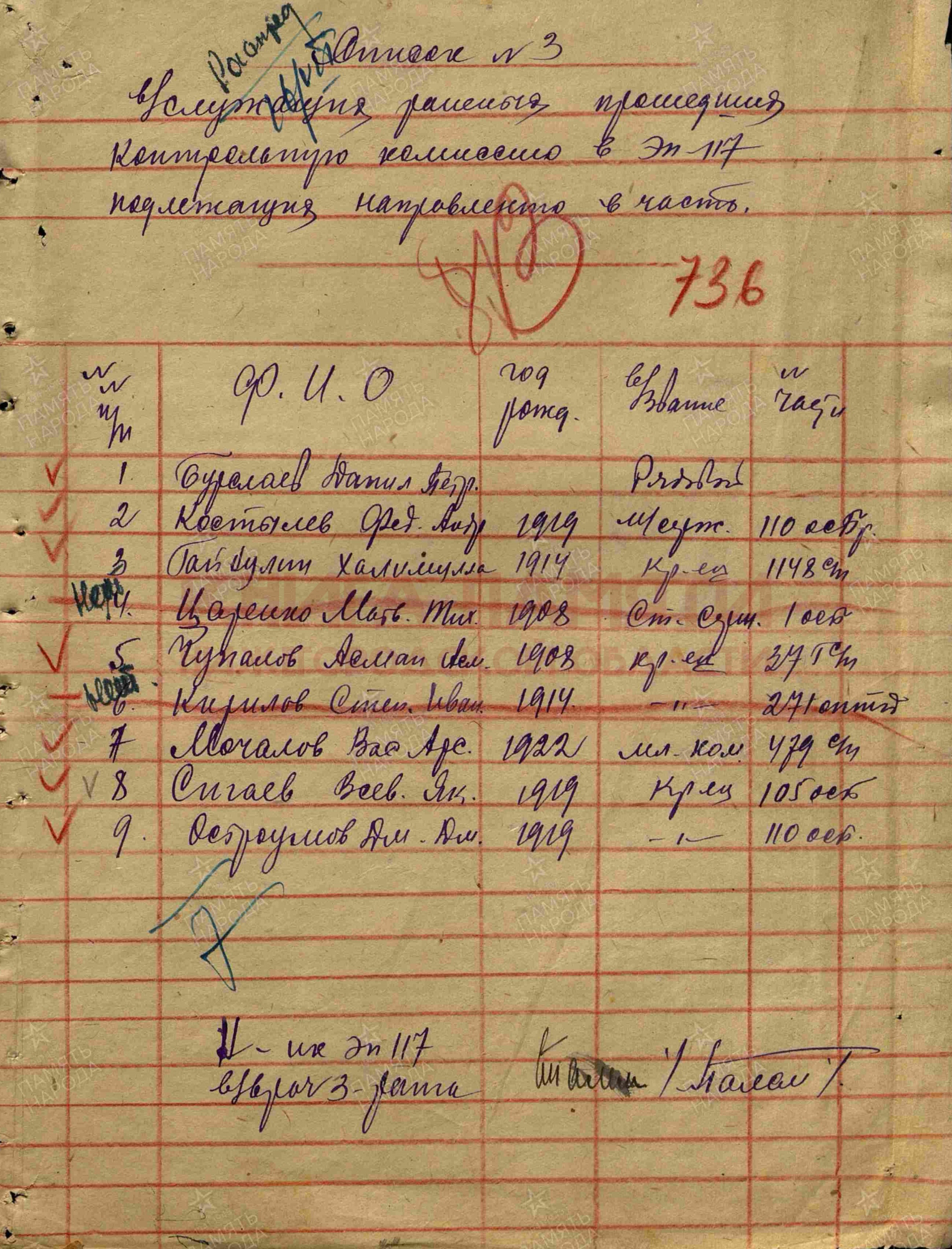 516 стрелковый полк 107 стрелковой дивизии (II); в/ч п/п 78106; 208 фронтовой запасной стрелковый полк; 202 запасной стрелковый полк;