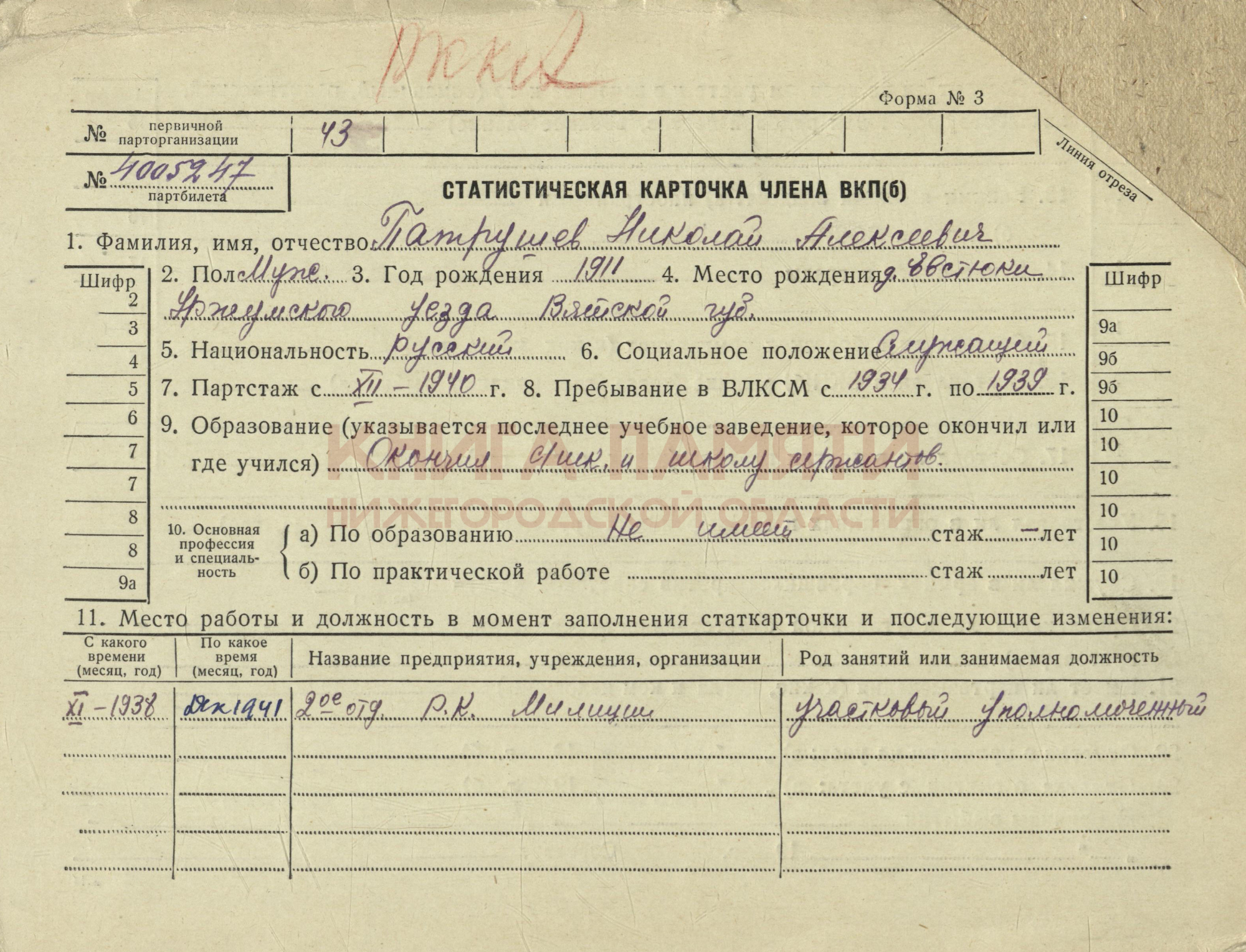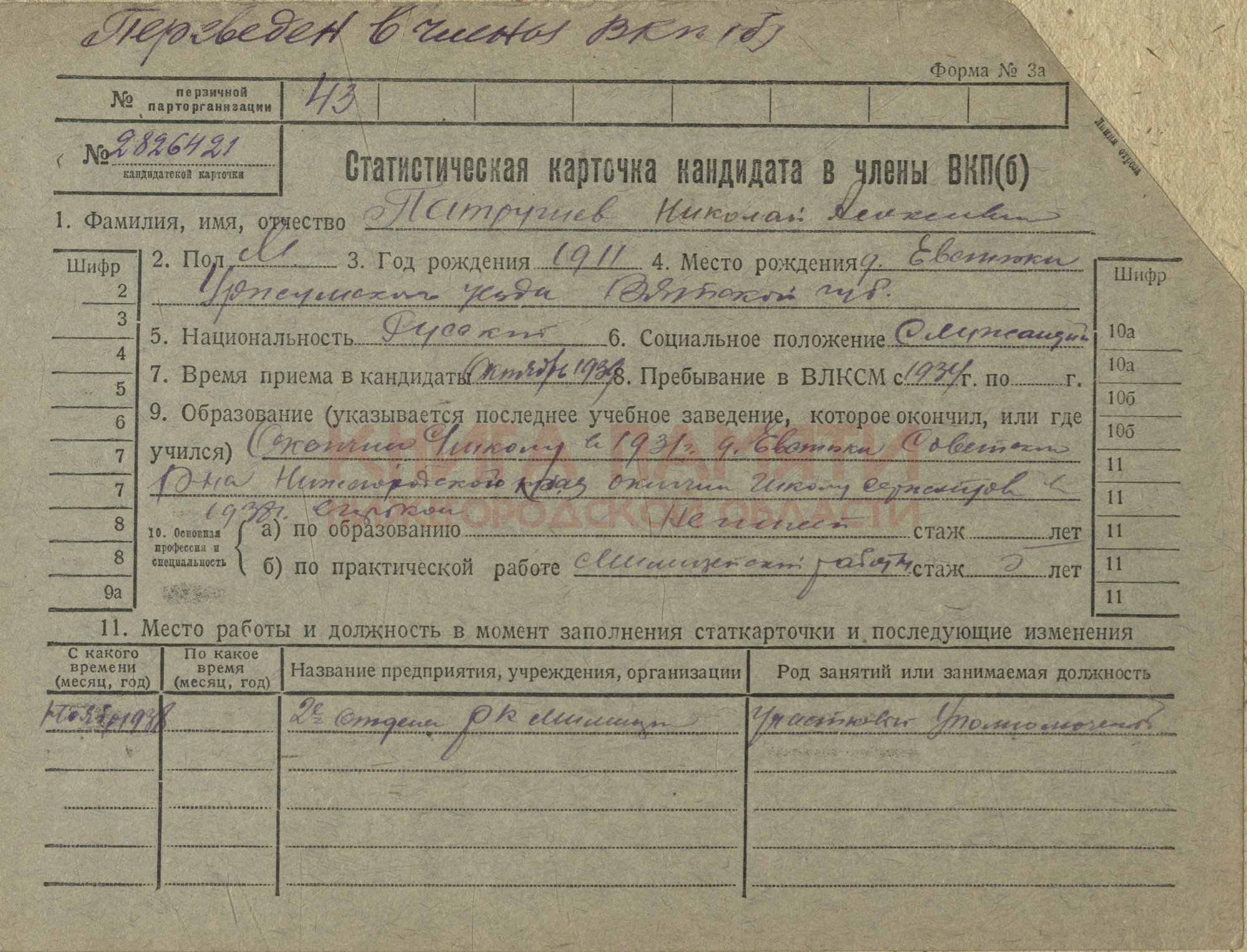 Место рождения