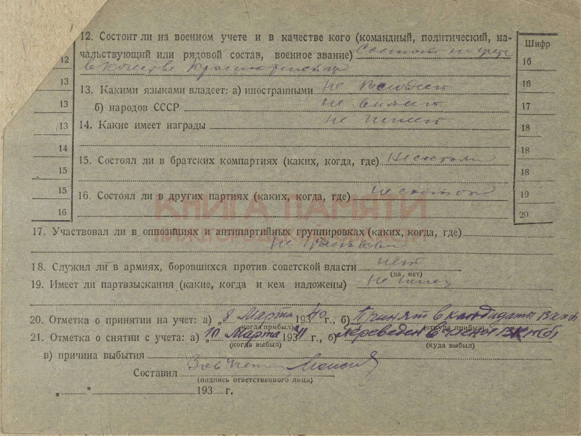 Место службы