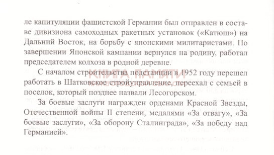После войны работал председателем колхоза, затем в Шатковсом стройуправлении. Переехал в п. Лесогорск.